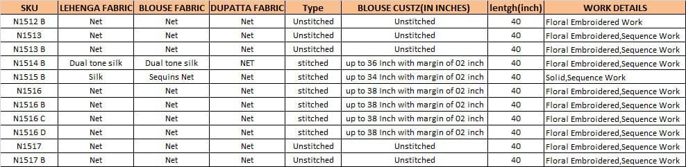 | Note | Stitching available on customer Requirment For Sarees , Salwar Kameez, Lehengha.(i.e M,L,XL,XXL). |