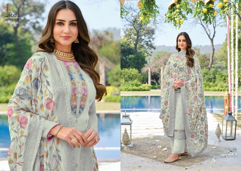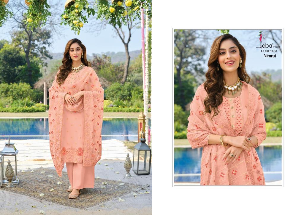 Buy Online Nimrat By Eba Lifestyle Designer Pure Viscose Organza Suits Single Avilable Wholesaler Supplier From India 4 Pcs of Full Catalogue at Wholesale Price. Looking for Nimrat By Eba Lifestyle Designer Pure Viscose Organza Suits Single Avilable Wholesaler Supplier From India Full Catalouge at Best Price? Buy Now Nimrat By Eba Lifestyle Designer Pure Viscose Organza Suits Single Avilable Wholesaler Supplier From India at Wholesale Rate of Rs 8396 with Total 4 Pcs from authroized dealer and supplier of Eba Lifestyle Brand. Cost of Each piece is just only Rs 2099 which is very low and affordable price to resale the product in your retail store ,This is Surat based Wholesale Supplier & Dealer of Eba Lifestyle Brand. Click on Brand name to Know more about Eba Lifestyle Brand's products.Call or Whatsapp on 9898838984 for booking or enquiry