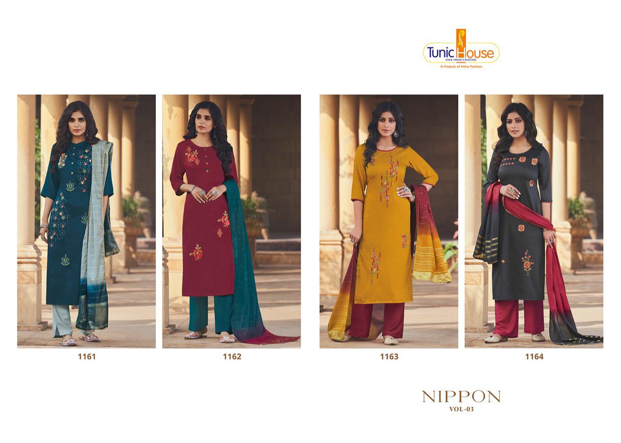 Buy Online Nippon Vol 3 By Tunic House Manufacturer Traders Surat 4 Pcs of Full Catalogue at Wholesale Price. Looking for Nippon Vol 3 By Tunic House Manufacturer Traders Surat Full Catalouge at Best Price? Buy Now Nippon Vol 3 By Tunic House Manufacturer Traders Surat at Wholesale Rate of Rs 3196 with Total 4 Pcs from authroized dealer and supplier of Brand. Cost of Each piece is just only Rs 799 which is very low and affordable price to resale the product in your retail store ,This is Surat based Wholesale Supplier & Dealer of Brand. Click on Brand name to Know more about Brand's products.Call or Whatsapp on 9898838984 for booking or enquiry