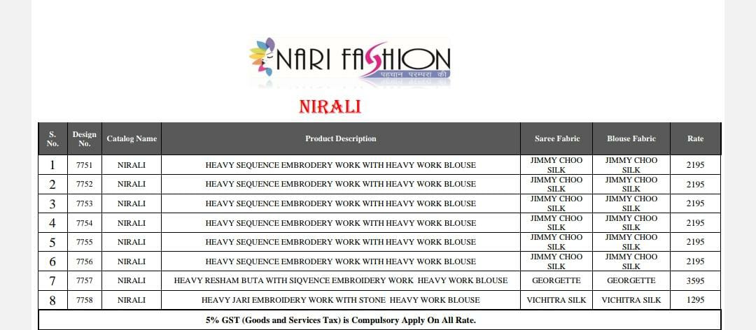 NIRALI BY NARI FASHION RATE LIST ATTACHED GST 5% SHIP EXTRA SINGLE AVAILABLE 100+ SINGLE |