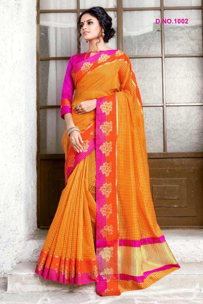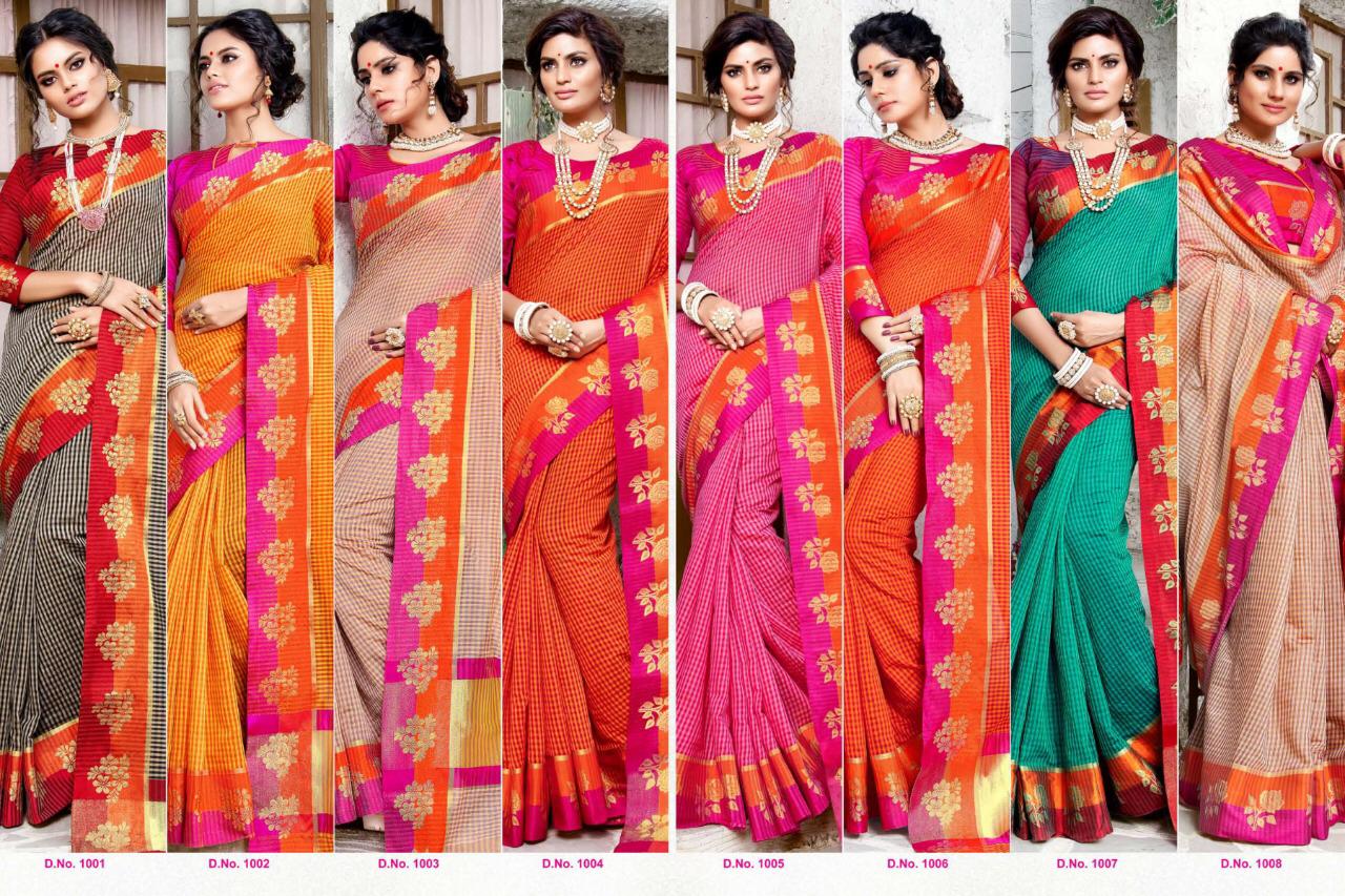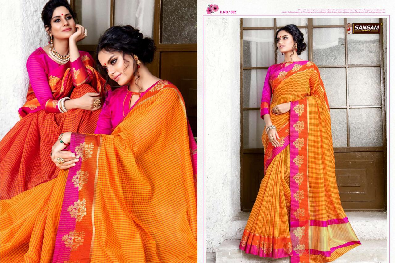Buy Online Nirmaya By Sangam 1001 Series Fancy Kota Checks Weaving Silk Saree Collection Wholesaler Surat 8 Pcs of Full Catalogue at Wholesale Price. Looking for Nirmaya By Sangam 1001 Series Fancy Kota Checks Weaving Silk Saree Collection Wholesaler Surat Full Catalouge at Best Price? Buy Now Nirmaya By Sangam 1001 Series Fancy Kota Checks Weaving Silk Saree Collection Wholesaler Surat at Wholesale Rate of Rs 5800 with Total 8 Pcs from authroized dealer and supplier of SANGAM Brand. Cost of Each piece is just only Rs 725 which is very low and affordable price to resale the product in your retail store ,This is Surat based Wholesale Supplier & Dealer of SANGAM Brand. Click on Brand name to Know more about SANGAM Brand's products.Call or Whatsapp on 9898838984 for booking or enquiry