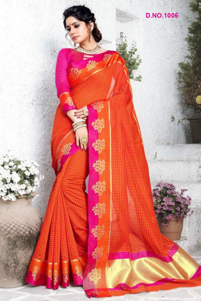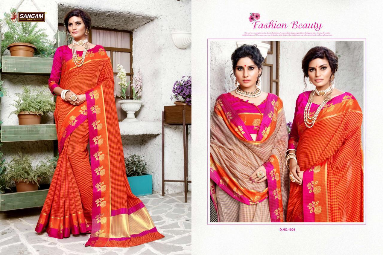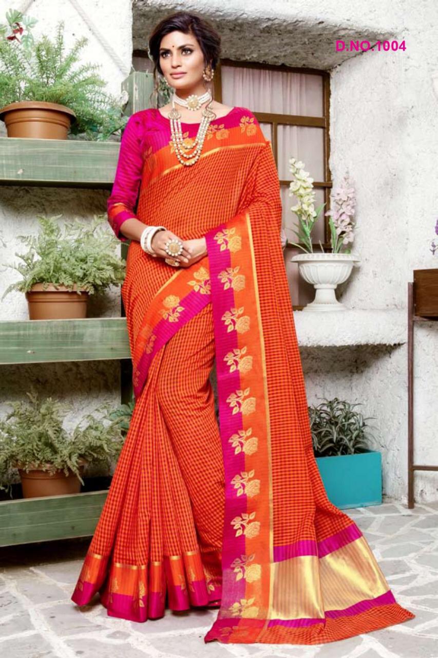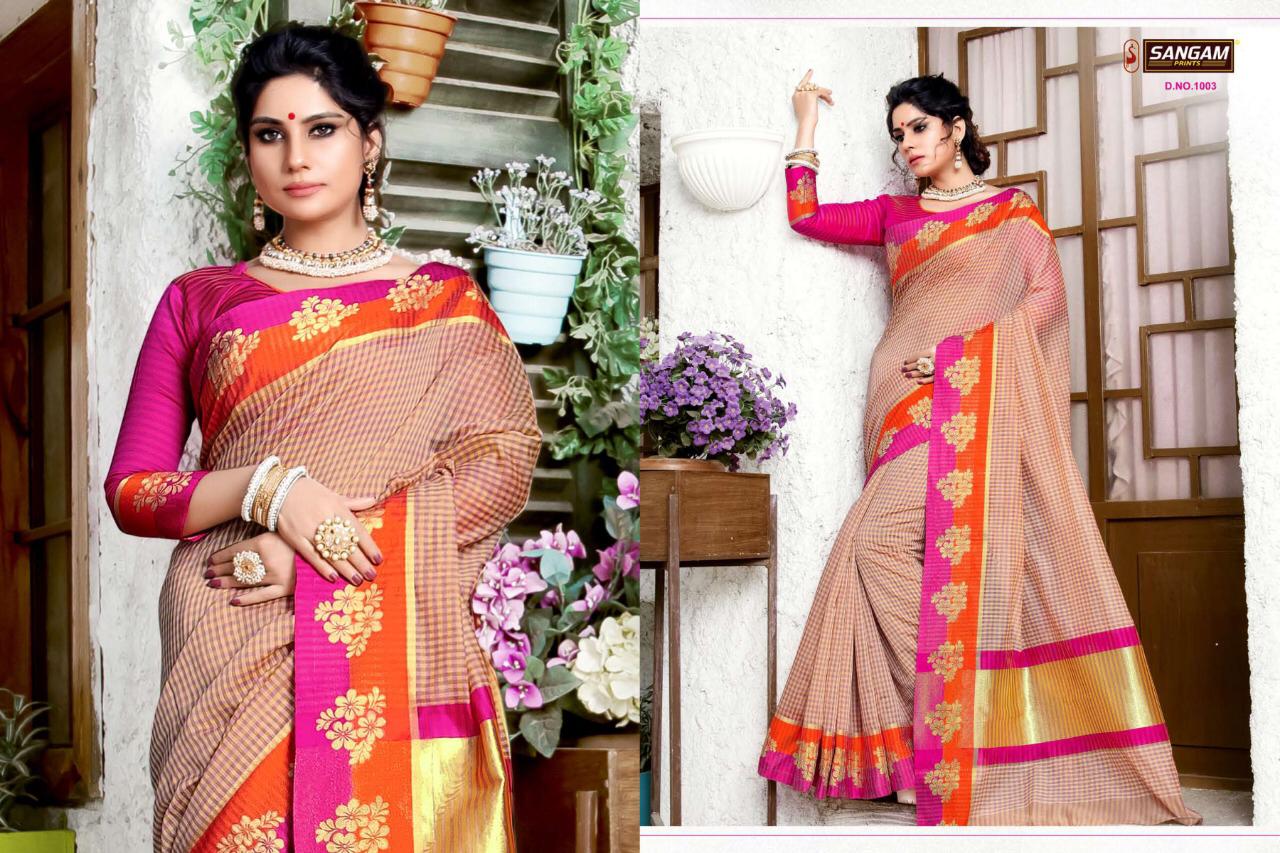 Buy Online Nirmaya By Sangam 1001 Series Fancy Kota Checks Weaving Silk Saree Collection Wholesaler Surat 8 Pcs of Full Catalogue at Wholesale Price. Looking for Nirmaya By Sangam 1001 Series Fancy Kota Checks Weaving Silk Saree Collection Wholesaler Surat Full Catalouge at Best Price? Buy Now Nirmaya By Sangam 1001 Series Fancy Kota Checks Weaving Silk Saree Collection Wholesaler Surat at Wholesale Rate of Rs 5800 with Total 8 Pcs from authroized dealer and supplier of SANGAM Brand. Cost of Each piece is just only Rs 725 which is very low and affordable price to resale the product in your retail store ,This is Surat based Wholesale Supplier & Dealer of SANGAM Brand. Click on Brand name to Know more about SANGAM Brand's products.Call or Whatsapp on 9898838984 for booking or enquiry