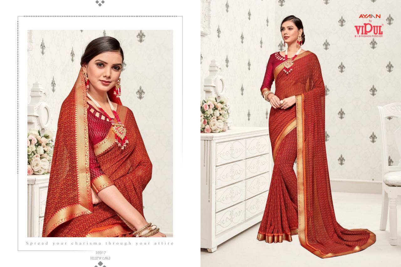 *VIPUL* (AYAAN TRENDZ PVT LTD) PRESENTS ITS NEW LAUNCH *CAT-393 * *NIRMOHA* _GET GORGEOUS AND FEEL THE DIFFERENCE .EXPLORE THE UNDISCOVER FASHION & CREATE A NEW STYLE STATEMENT . _ _ALL GEORGET SILKY PRINT WITH EXCLUSIVE ZARI BORDER._ *RATE-852?* 5%GST APPLICABLE SET TO SET BOX PACKING DELIVERY MONDAY |