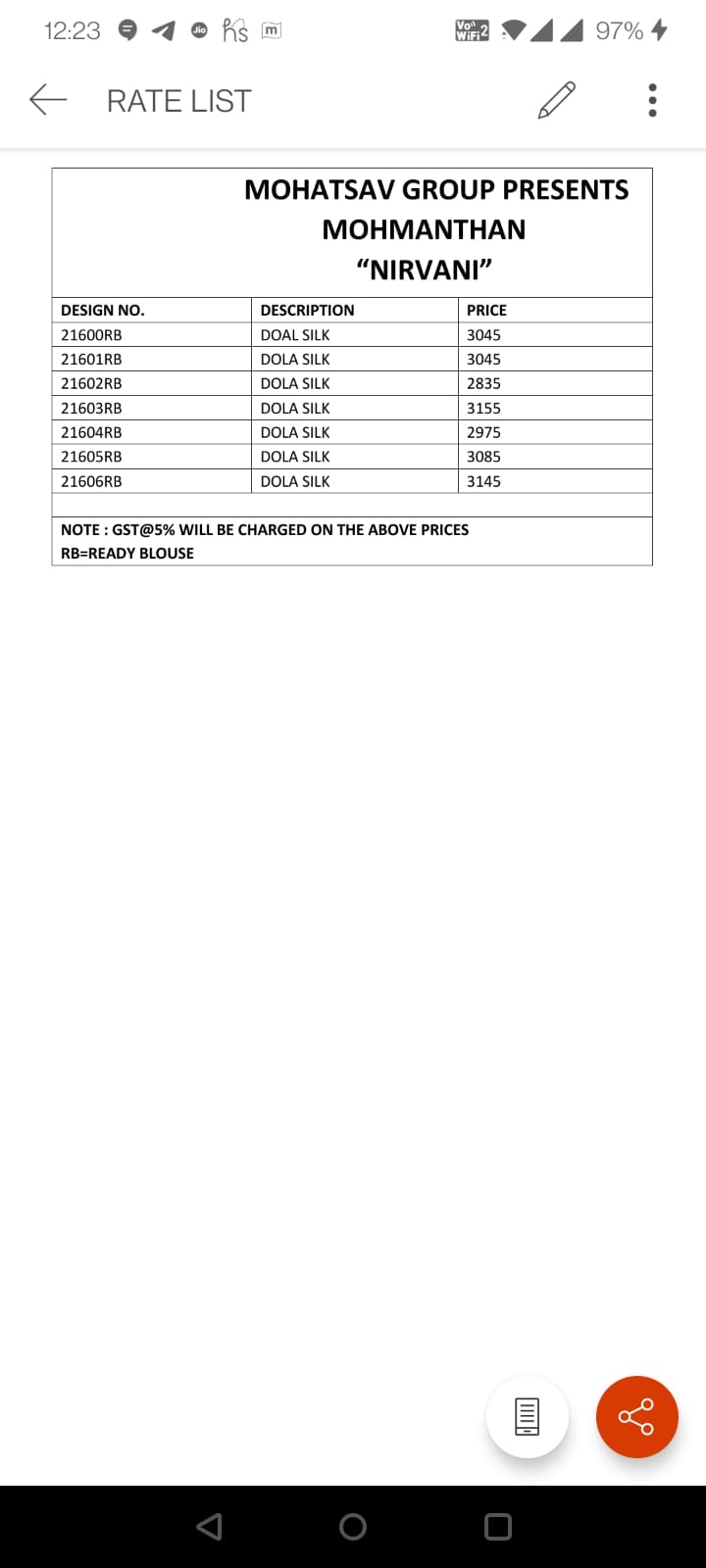 MAHOTSAV NIRVANI FABRIC- DOLA SILK WITH READY MADE BLOUSE GST - 5 ALL AVAILABLE IN SINGLES AND SET WISE 100+single |