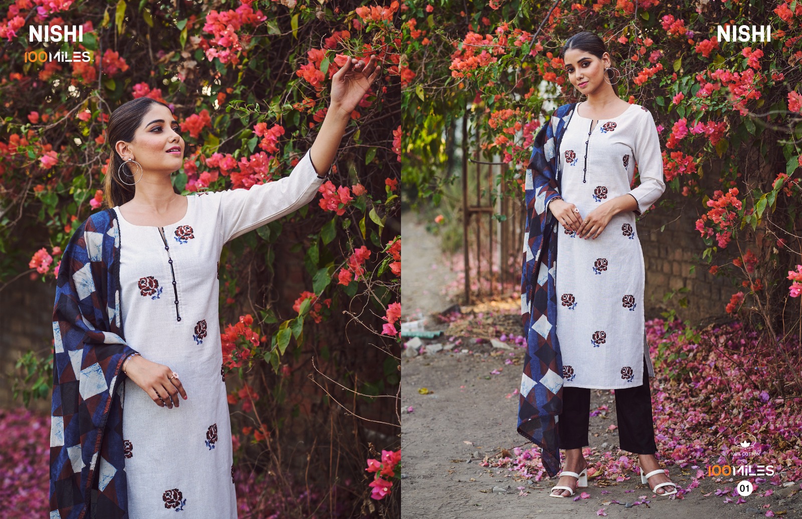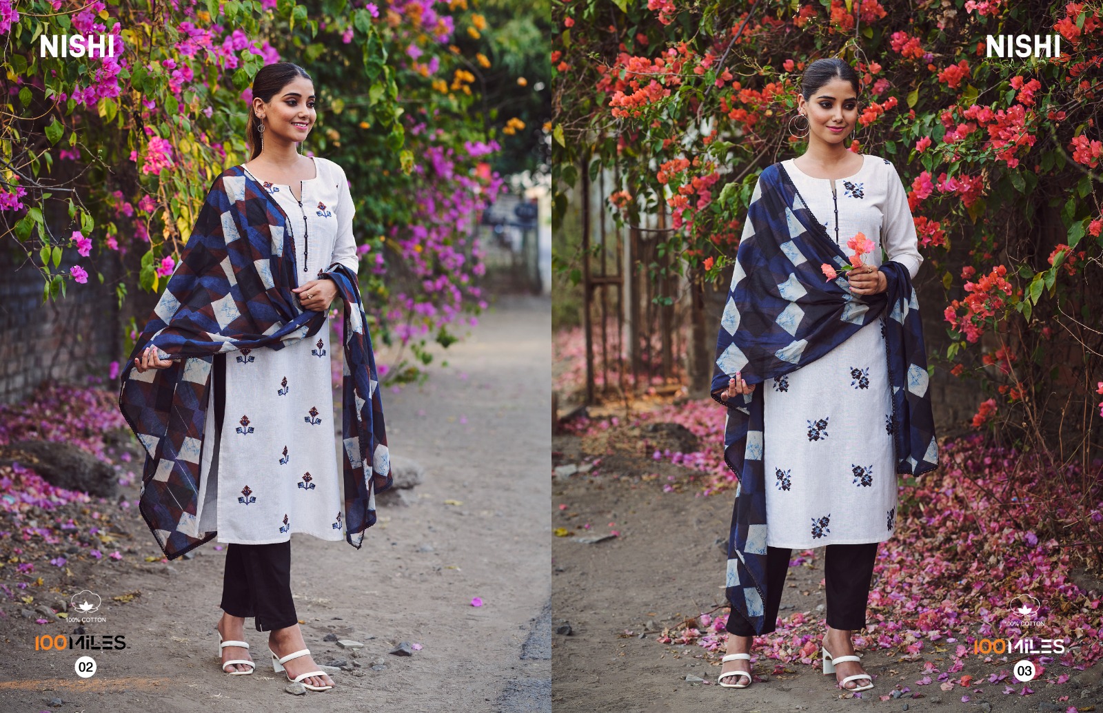 Nishi By 100 Miles Pure Cotton Kurti Pant With Dupatta Concept Wholesaler Surat