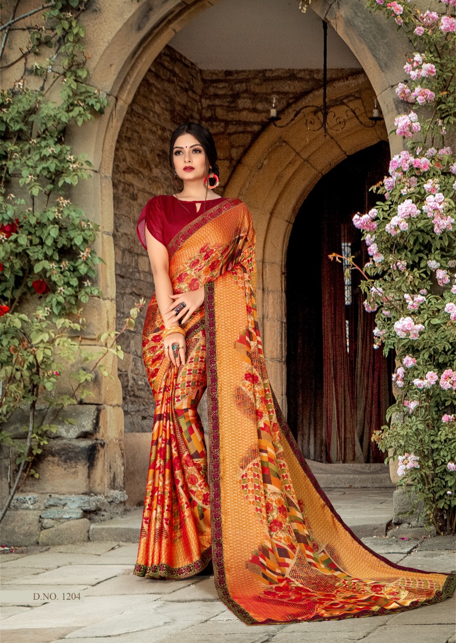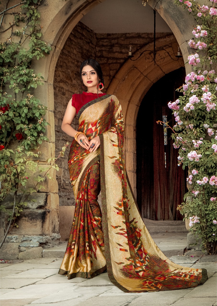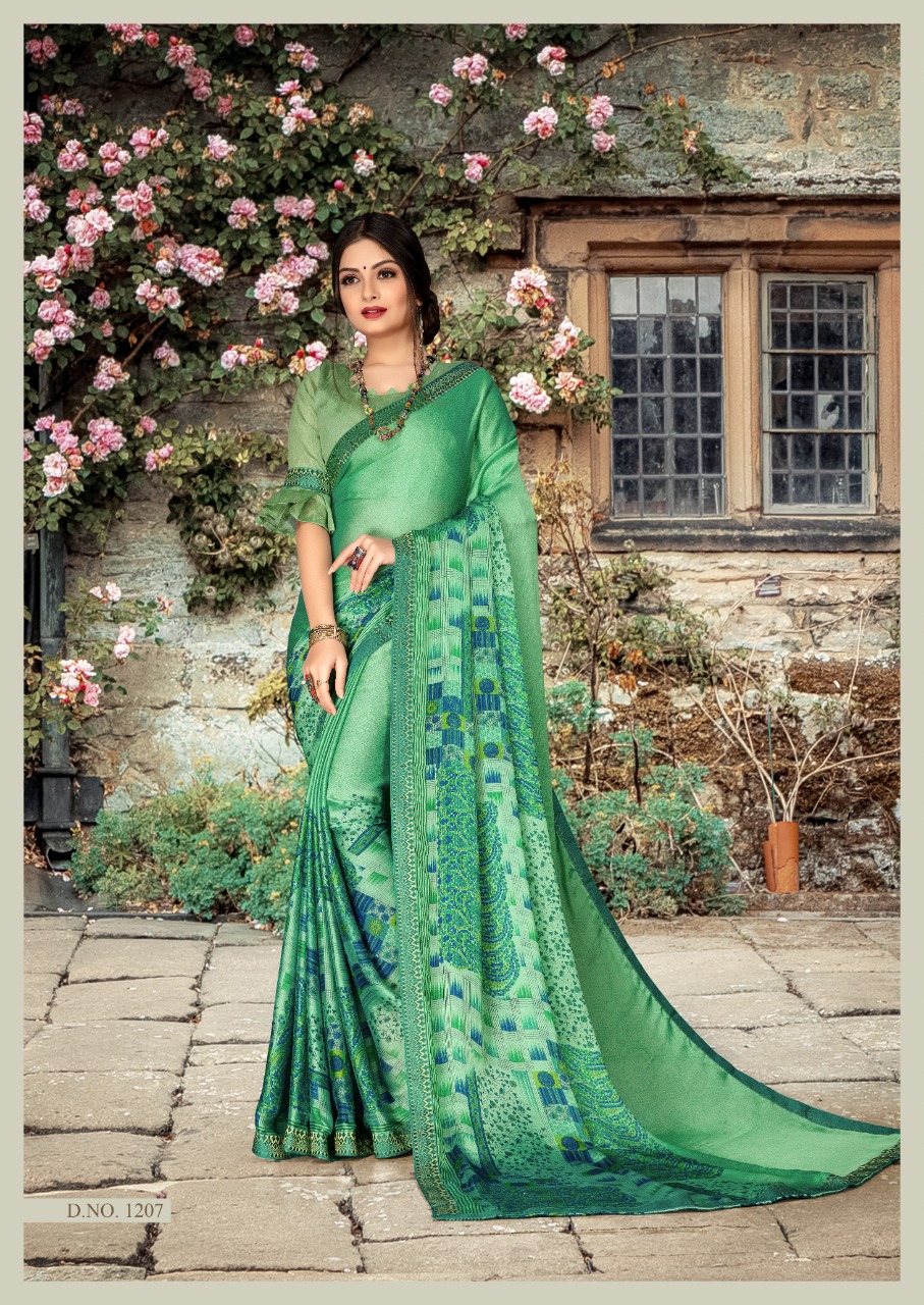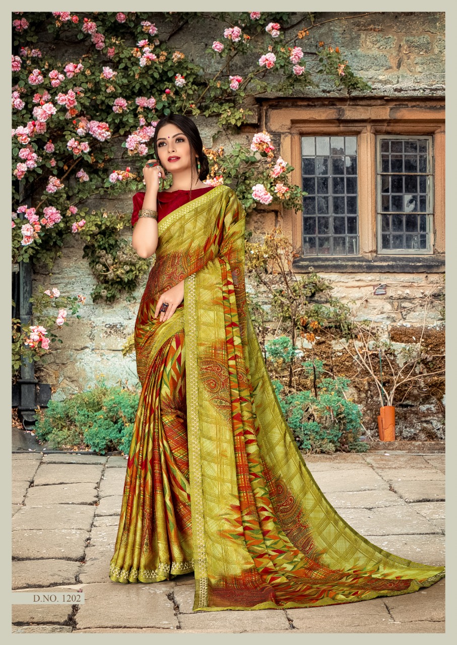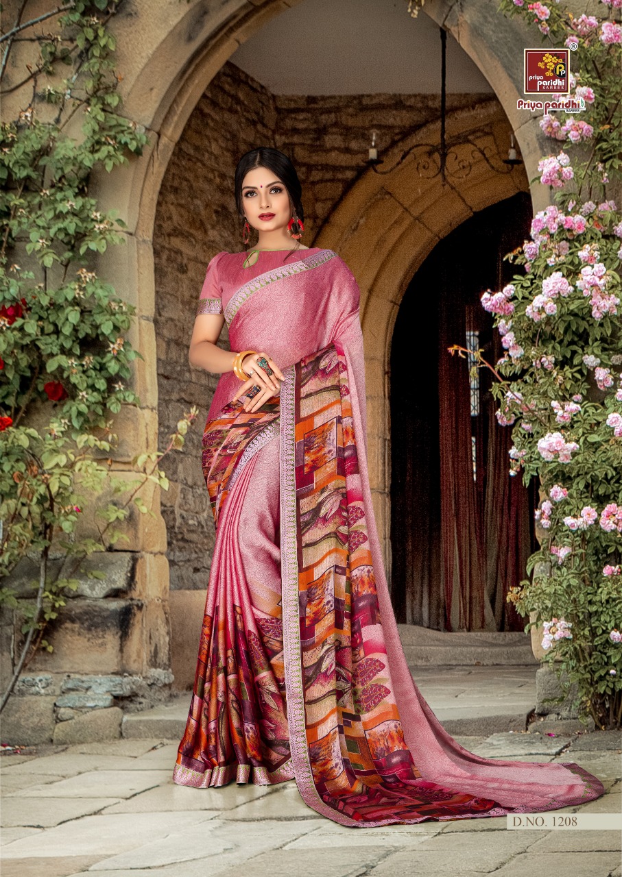 Nishka Vol 2 Priya paridh Fancy C by P Moss fabric with designer less border Printed Saree .! 08 pc 08 design 565/- Set to set only 5% GST |