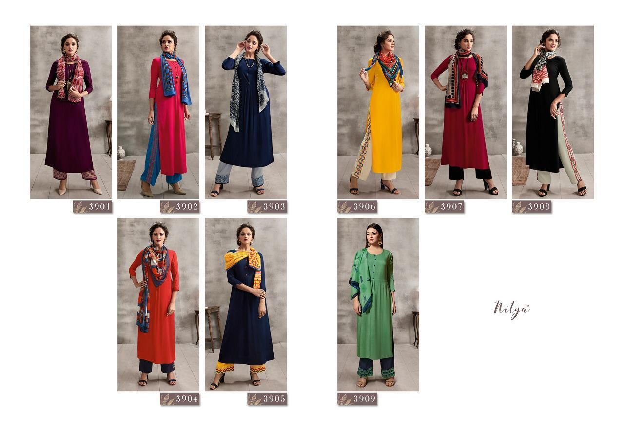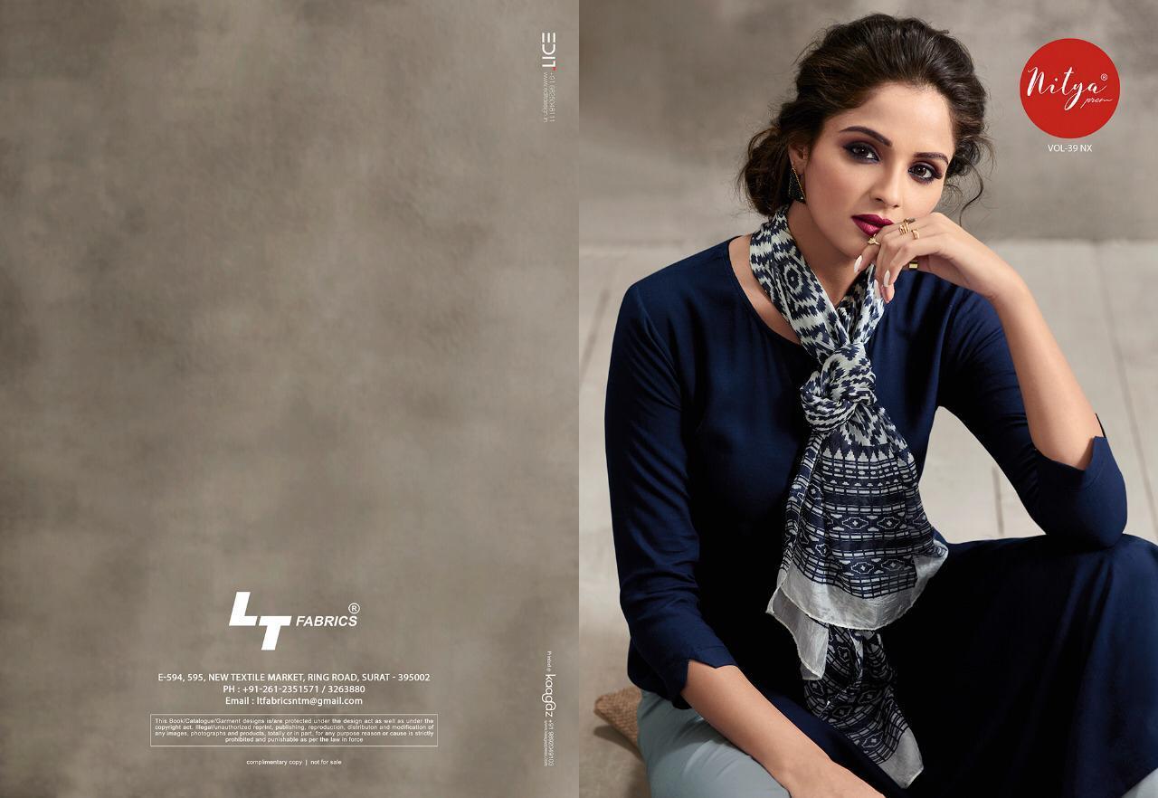 Buy Online Nitya 39 Nx By Lt Reyon Designer Ready To Wear Dresses Wholesale Supplier And Dealer Gujarat 9 Pcs of Full Catalogue at Wholesale Price. Looking for Nitya 39 Nx By Lt Reyon Designer Ready To Wear Dresses Wholesale Supplier And Dealer Gujarat Full Catalouge at Best Price? Buy Now Nitya 39 Nx By Lt Reyon Designer Ready To Wear Dresses Wholesale Supplier And Dealer Gujarat at Wholesale Rate of Rs 8550 with Total 9 Pcs from authroized dealer and supplier of LT FABRICS Brand. Cost of Each piece is just only Rs 950 which is very low and affordable price to resale the product in your retail store ,This is Surat based Wholesale Supplier & Dealer of LT FABRICS Brand. Click on Brand name to Know more about LT FABRICS Brand's products.Call or Whatsapp on 9898838984 for booking or enquiry