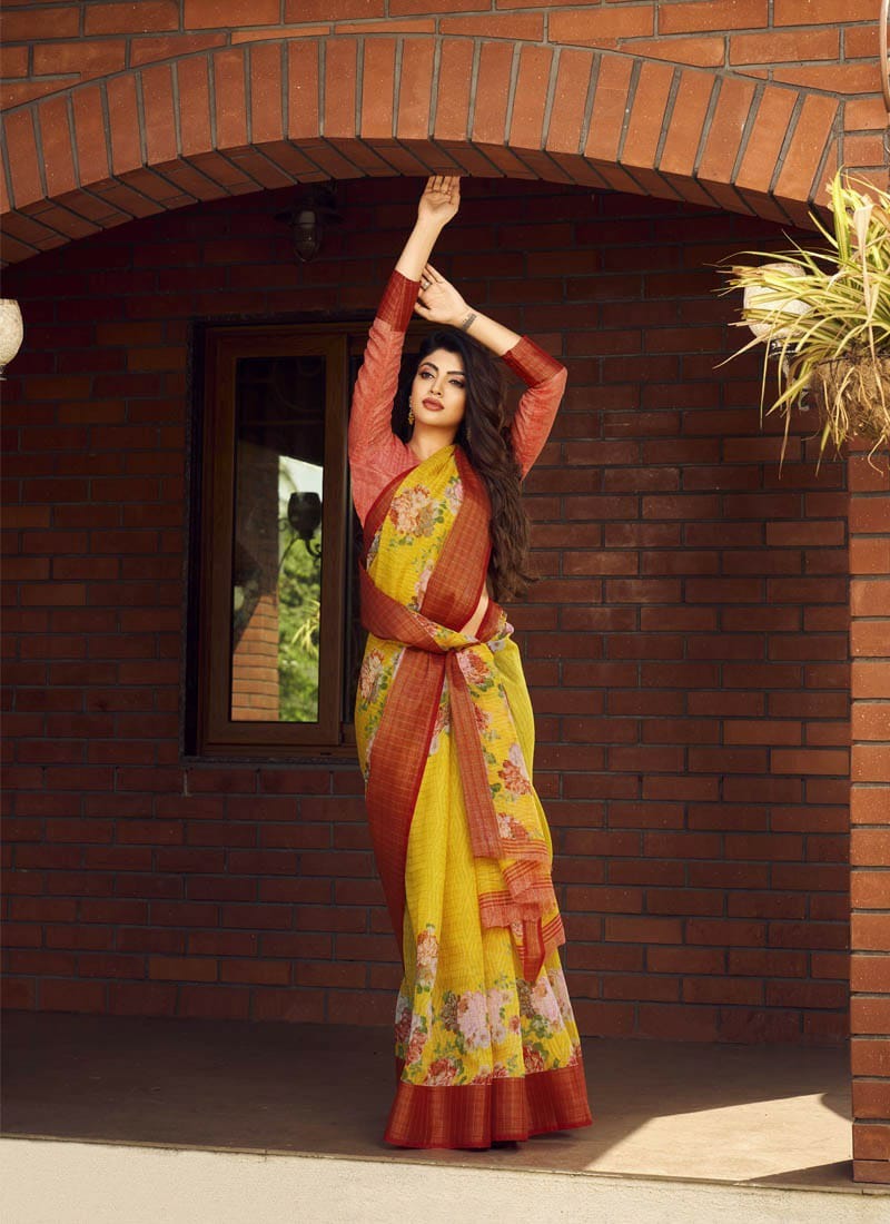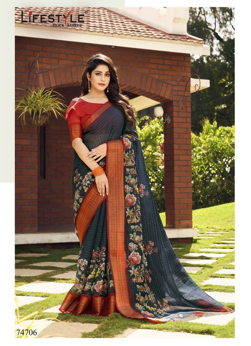 Brand = *LIFESTYLE* Catalog :- *NITYA COTTON* Volume :- 1 Fabric :- *JARICHECKS* Packing :- BOX Ex-mill Price :- *601 per pcs */- Cut/Length :- 6.4 Set to set FANCY JARI CHECKS COTTON PRINTED SAREE PACKING -today |