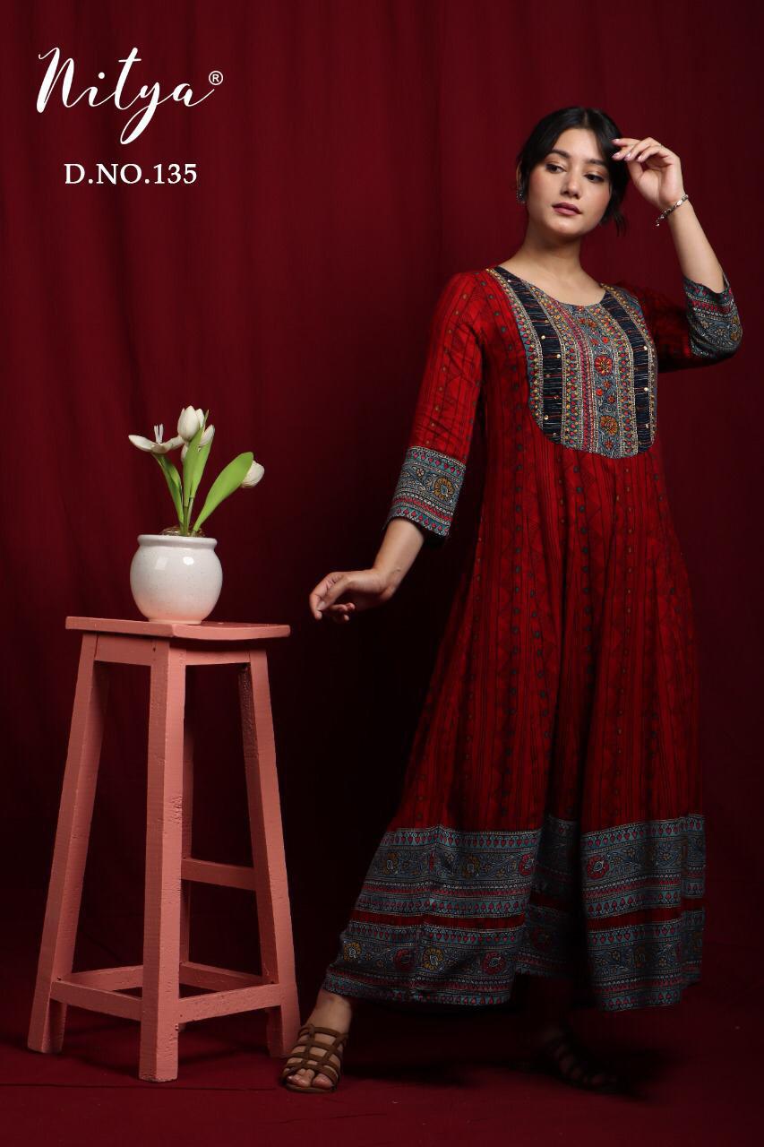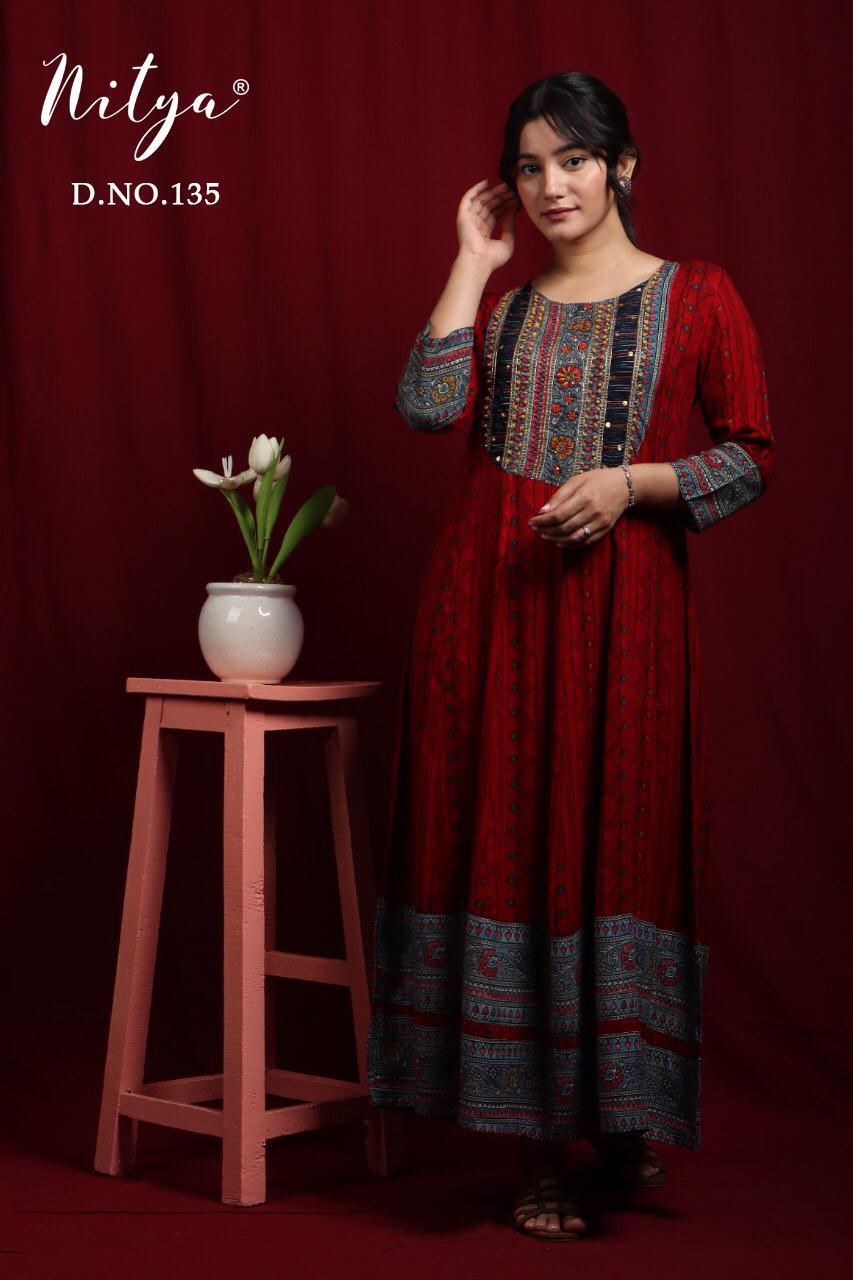 Nitya D No 135 Rayon Gown Wholesaler Supplier Surat