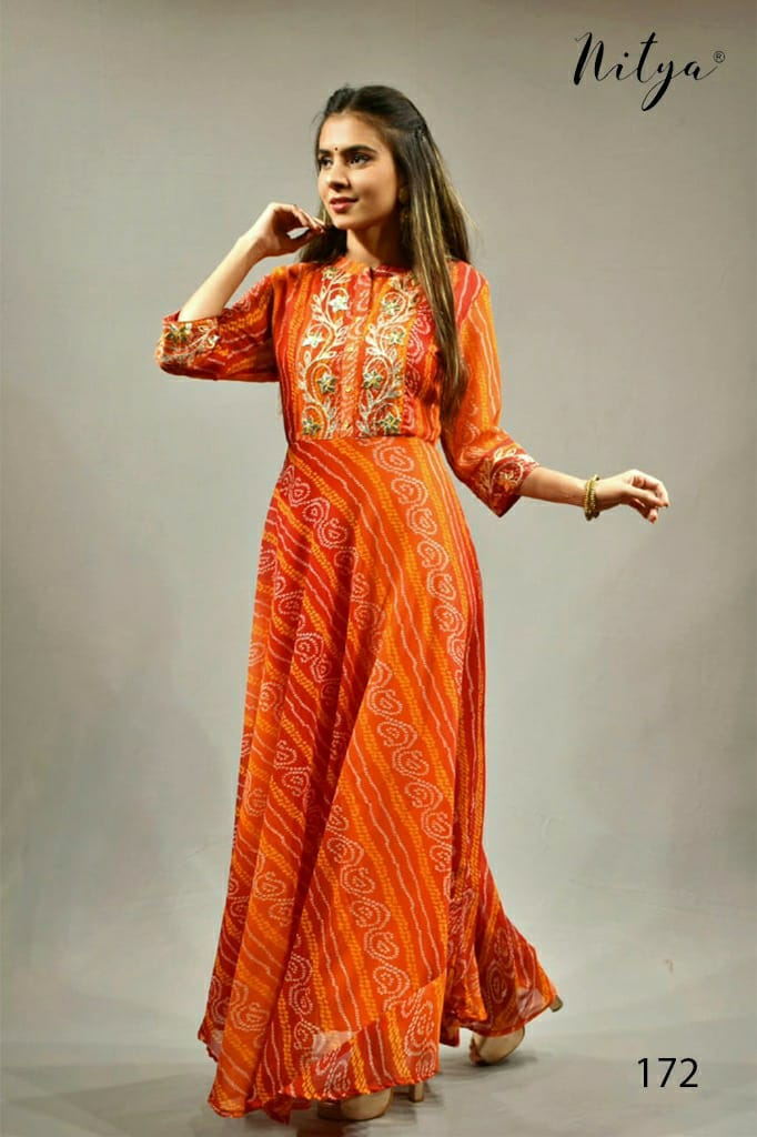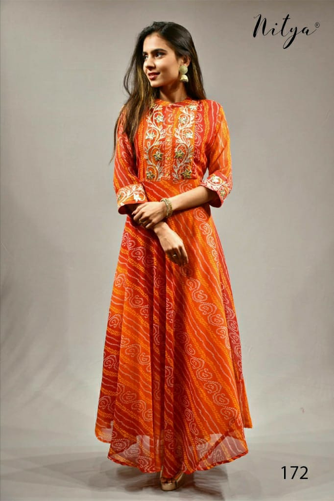 *Brand :* LT *Catalog Name :* Nitya D No 172 *Price :* ?885 *Piece :* 4 *Total Price :* 3540 ( GST Extra ) *Size :* M::L::XL::XXL *Fabric :* georgget *Availibility :* On Booking |