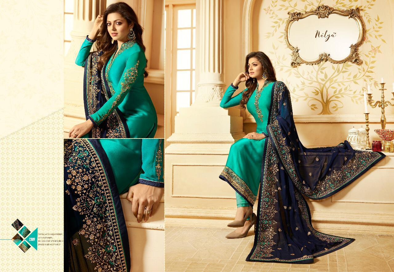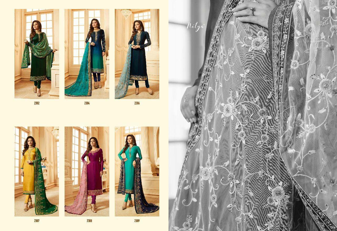 Nitya Vol 123 By Lt Fabrics 2307 Series Fancy Satin Georgette Party Wear Salwar Kameez Catlog Wholesale Dealer Surat