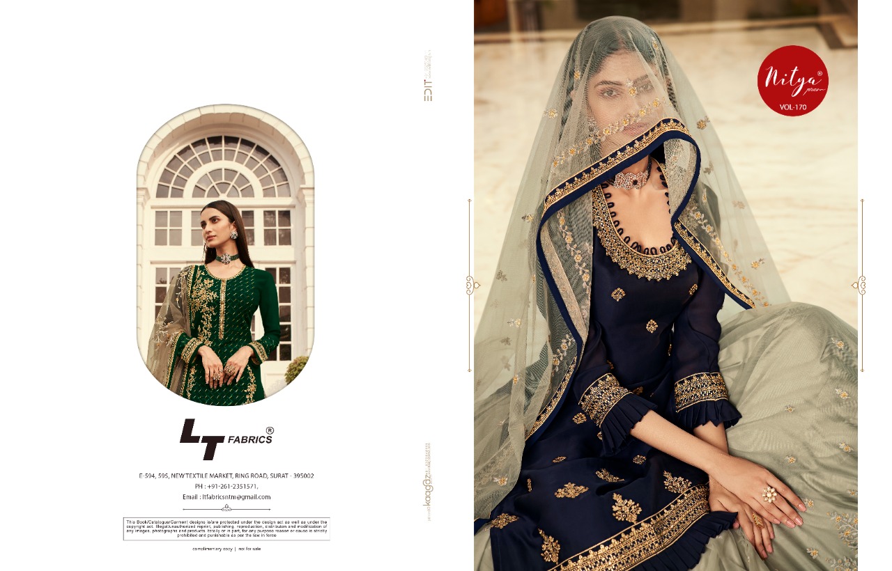 Buy Online Nitya Vol 170 By Lt Fabric Single And Set Stockiest And Supplier From Surat 6 Pcs of Full Catalogue at Wholesale Price. Looking for Nitya Vol 170 By Lt Fabric Single And Set Stockiest And Supplier From Surat Full Catalouge at Best Price? Buy Now Nitya Vol 170 By Lt Fabric Single And Set Stockiest And Supplier From Surat at Wholesale Rate of Rs 14994 with Total 6 Pcs from authroized dealer and supplier of LT FABRICS Brand. Cost of Each piece is just only Rs 2499 which is very low and affordable price to resale the product in your retail store ,This is Surat based Wholesale Supplier & Dealer of LT FABRICS Brand. Click on Brand name to Know more about LT FABRICS Brand's products.Call or Whatsapp on 9898838984 for booking or enquiry