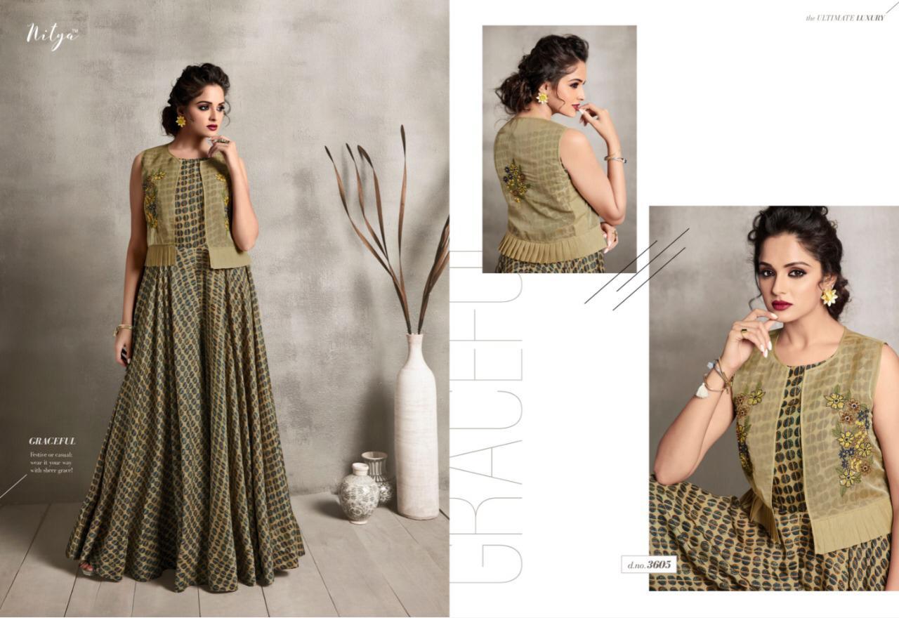 Nitya Vol 36 Nx By Lt Fabrics 3601 Series Fancy Party Wear Gown Style Kurti Collection Wholesaler Surat
