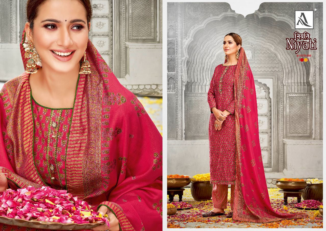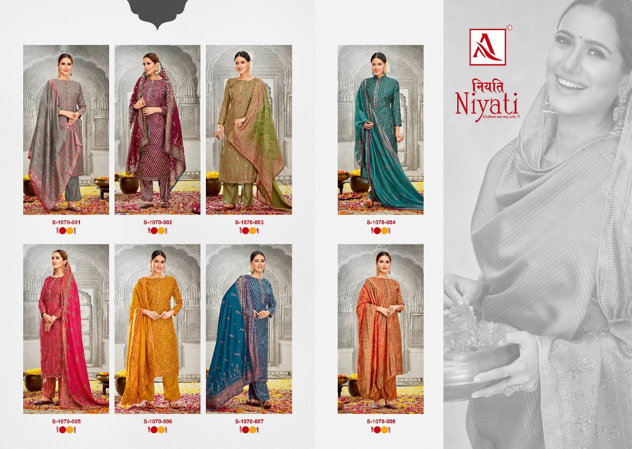 Buy Online Niyati By Alok Suit Wholesale Supplier Traders In Surat 8 Pcs of Full Catalogue at Wholesale Price. Looking for Niyati By Alok Suit Wholesale Supplier Traders In Surat Full Catalouge at Best Price? Buy Now Niyati By Alok Suit Wholesale Supplier Traders In Surat at Wholesale Rate of Rs 7192 with Total 8 Pcs from authroized dealer and supplier of Brand. Cost of Each piece is just only Rs 899 which is very low and affordable price to resale the product in your retail store ,This is Surat based Wholesale Supplier & Dealer of Brand. Click on Brand name to Know more about Brand's products.Call or Whatsapp on 9898838984 for booking or enquiry
