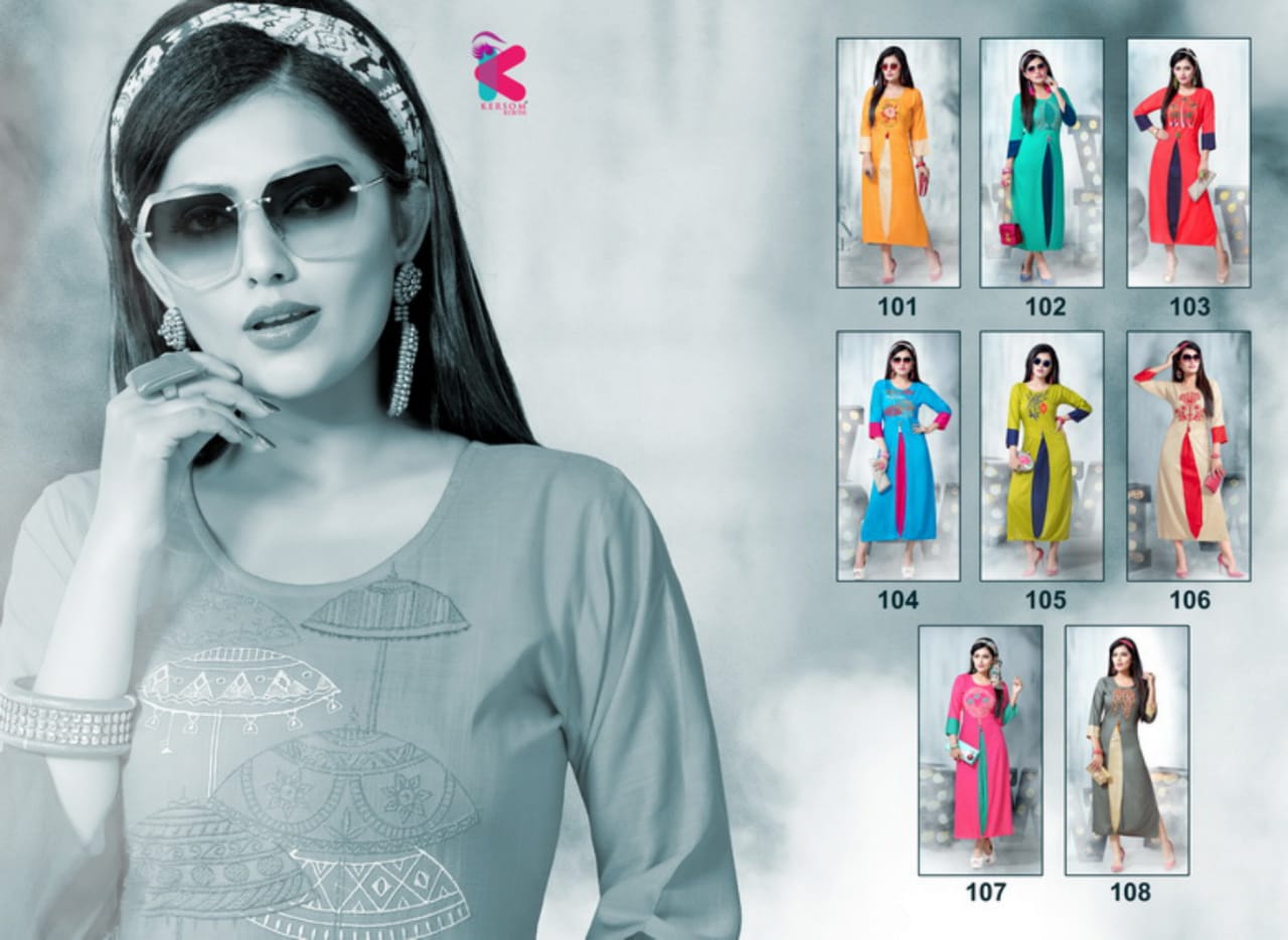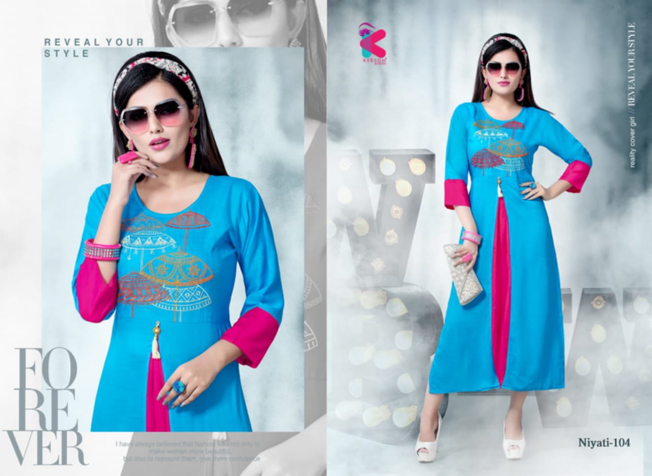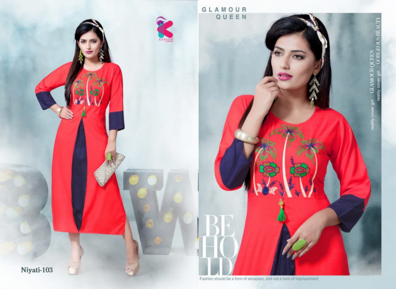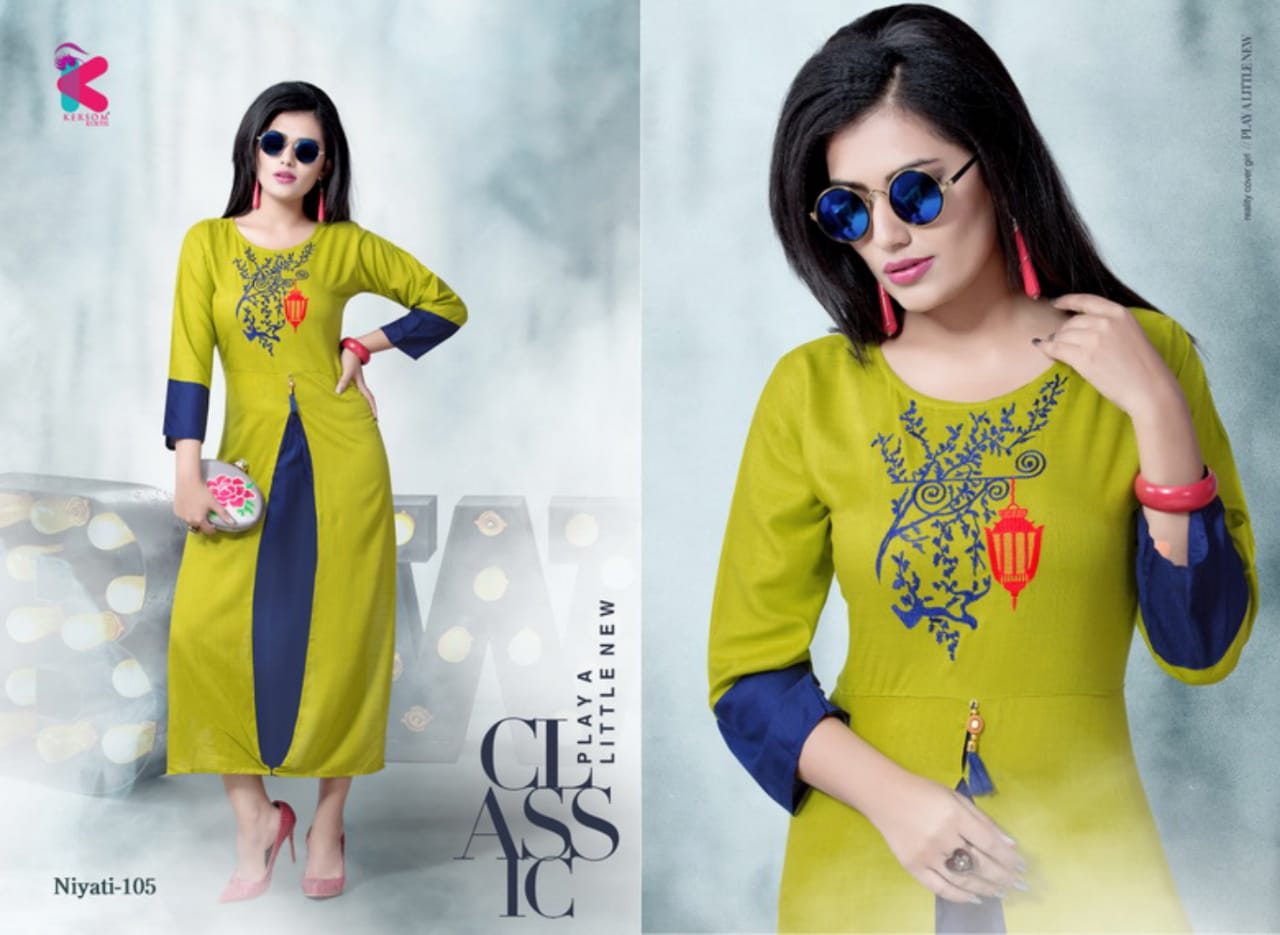 Niyati Series 101 To 108 Heavy Reyon Slub Sillai Work Pattern Kurtis Wholesale Supplier And Dealer Gujarat