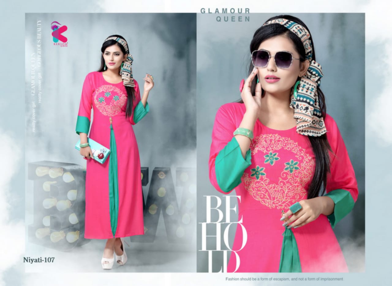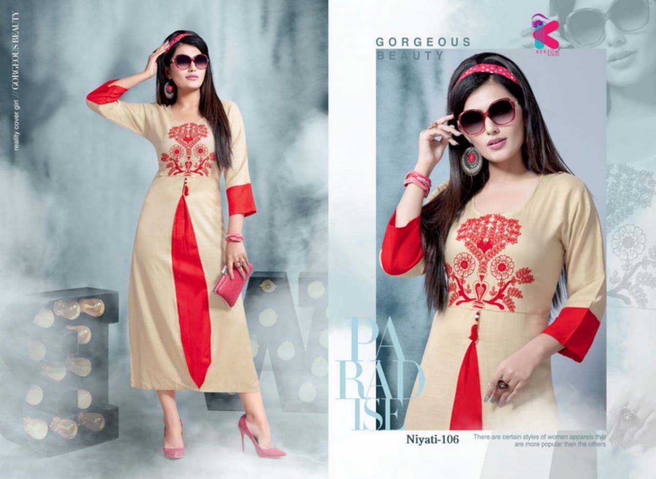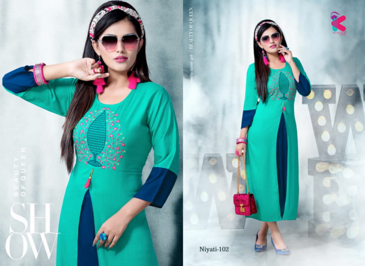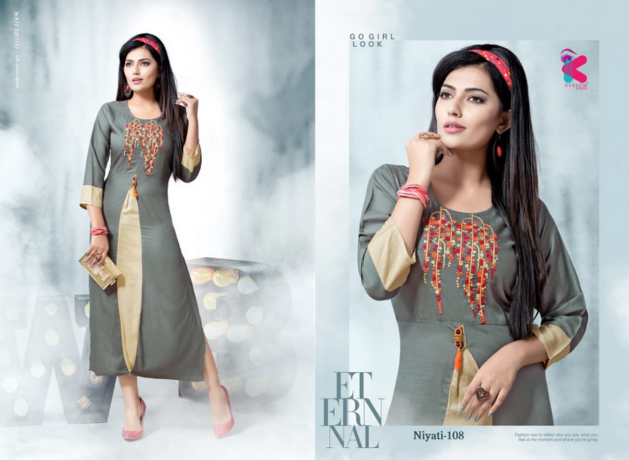 Buy Online Niyati Series 101 To 108 Heavy Reyon Slub Sillai Work Pattern Kurtis Wholesale Supplier And Dealer Gujarat 8 Pcs of Full Catalogue at Wholesale Price. Looking for Niyati Series 101 To 108 Heavy Reyon Slub Sillai Work Pattern Kurtis Wholesale Supplier And Dealer Gujarat Full Catalouge at Best Price? Buy Now Niyati Series 101 To 108 Heavy Reyon Slub Sillai Work Pattern Kurtis Wholesale Supplier And Dealer Gujarat at Wholesale Rate of Rs 3560 with Total 8 Pcs from authroized dealer and supplier of Brand. Cost of Each piece is just only Rs 445 which is very low and affordable price to resale the product in your retail store ,This is Surat based Wholesale Supplier & Dealer of Brand. Click on Brand name to Know more about Brand's products.Call or Whatsapp on 9898838984 for booking or enquiry