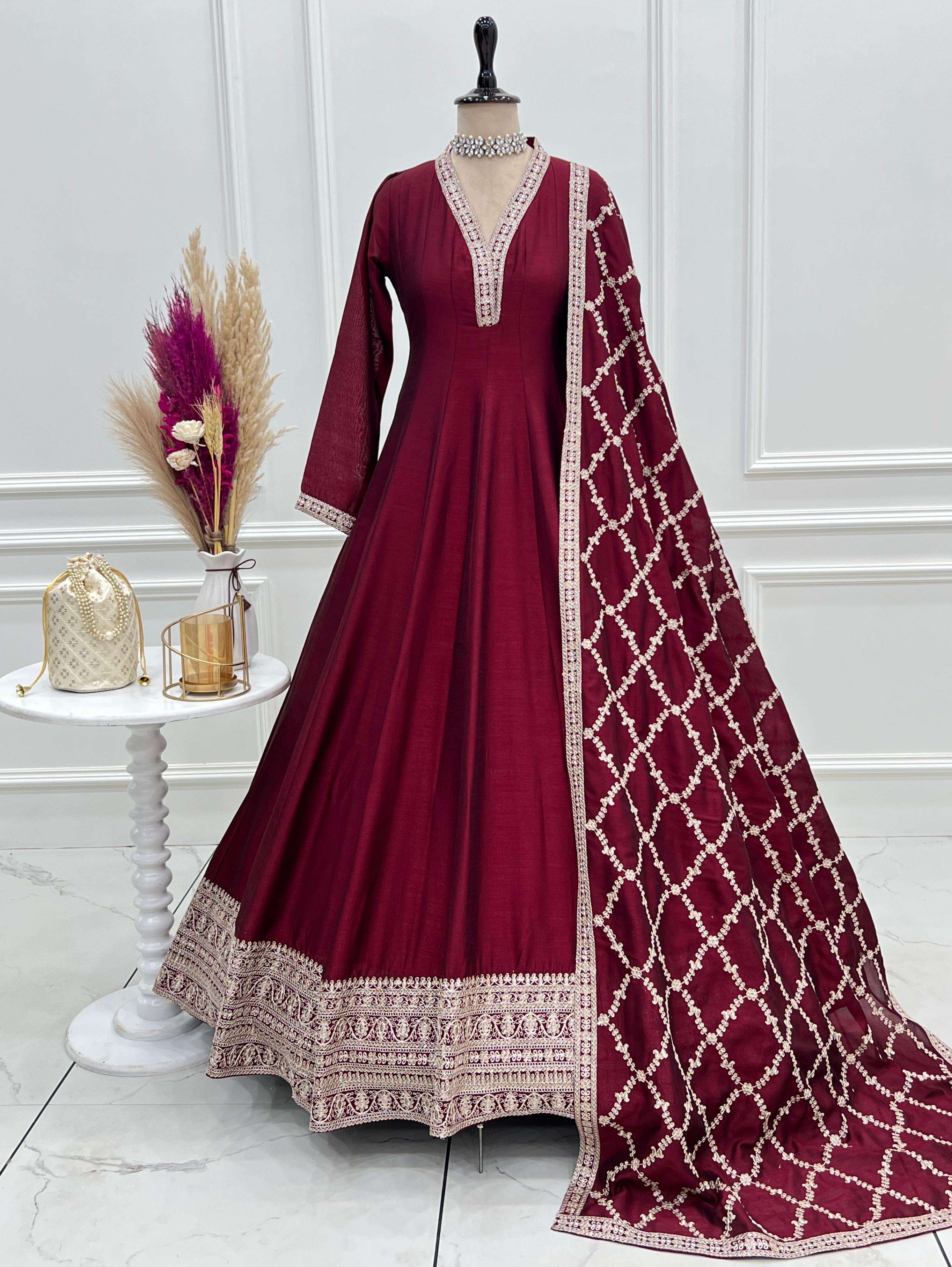 *This colourfull & fresh look outfit is perfect for upcoming festivities and weddings which provides you more comfort and style* *PRESENTING NEW HIGH END PREMIUM QUALITY PURE BLOOMING VICHITRA SILK FABRIC FULLY FLARE GOWN,WITH DUPPTA SET*