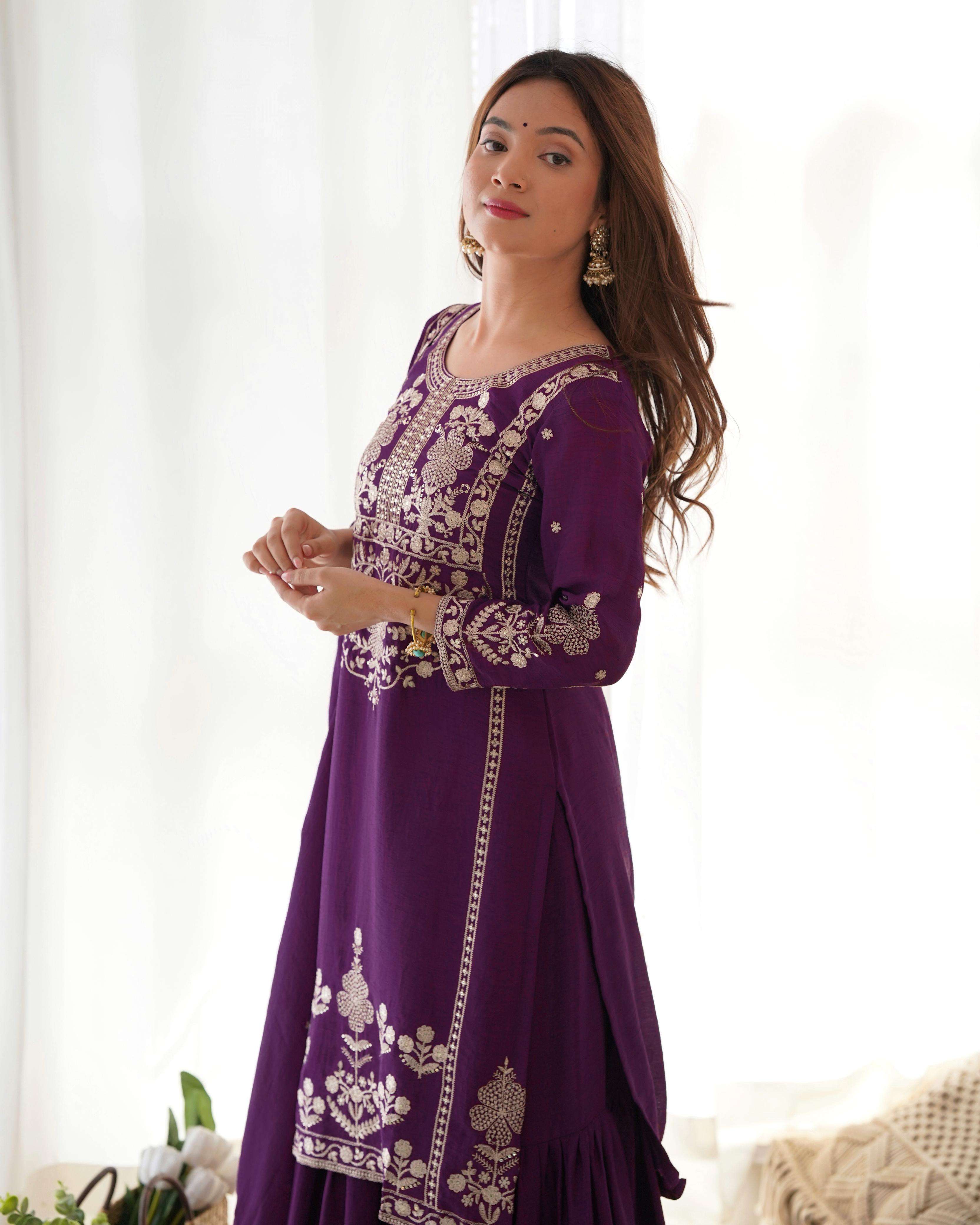 *KEDIYAKURTA FABRIC*:👗HEAVY PURE CHINNON SILK FABRIC WITH FANCY EMBROIDERY SEQUENCE AND JARI WORK