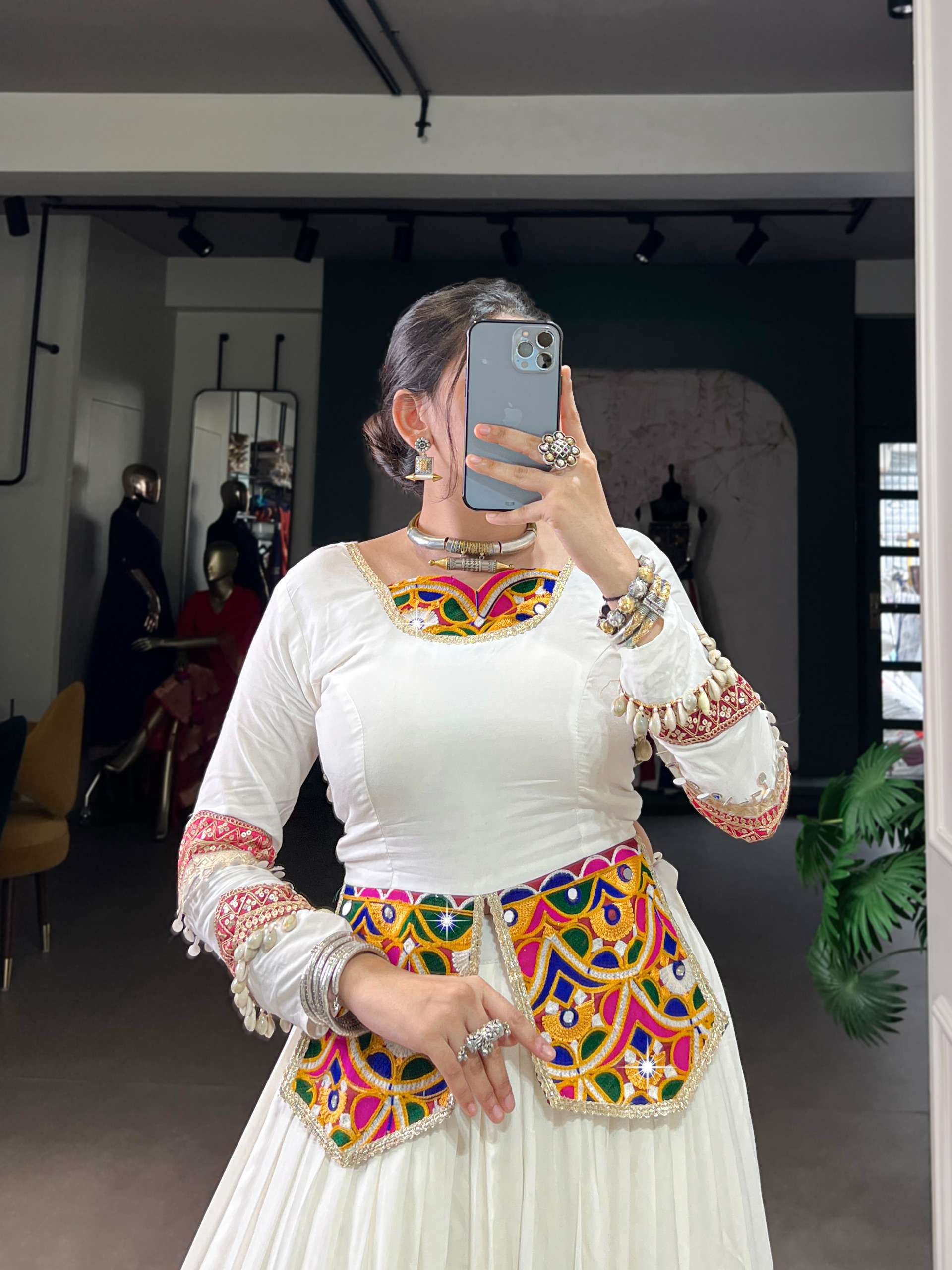 Multicolor beauty with a touch of tradition – designed for Garba moves 🦚