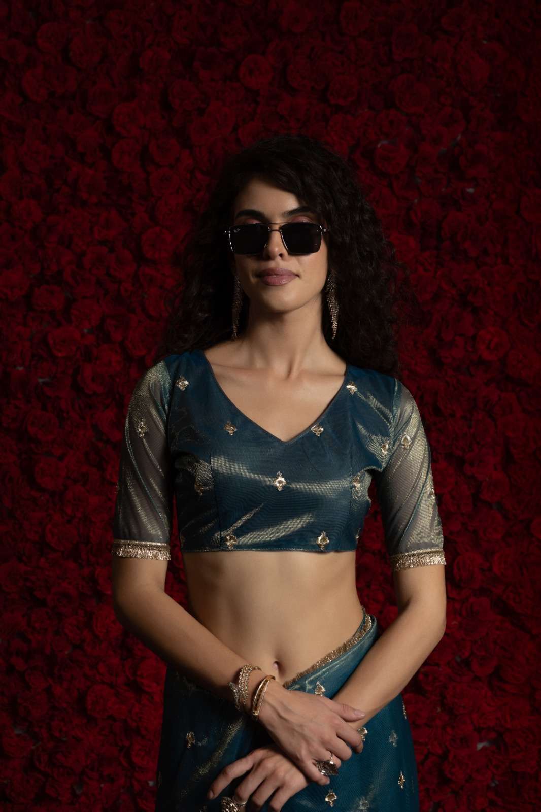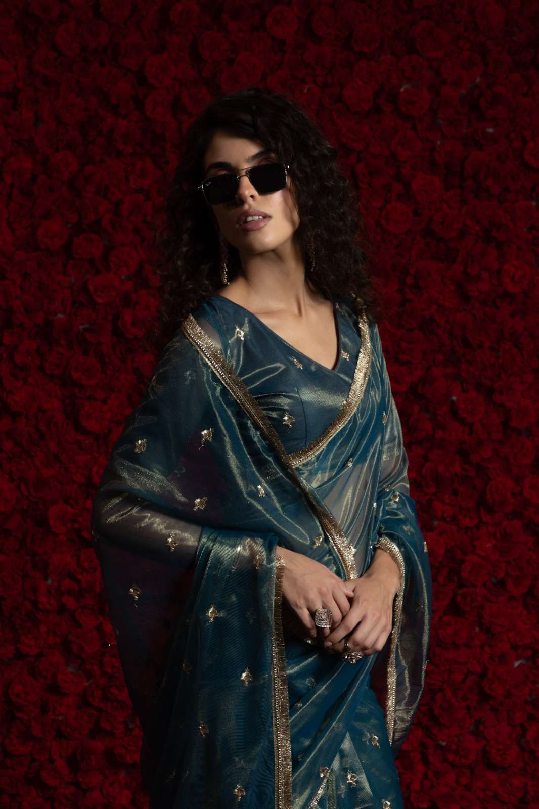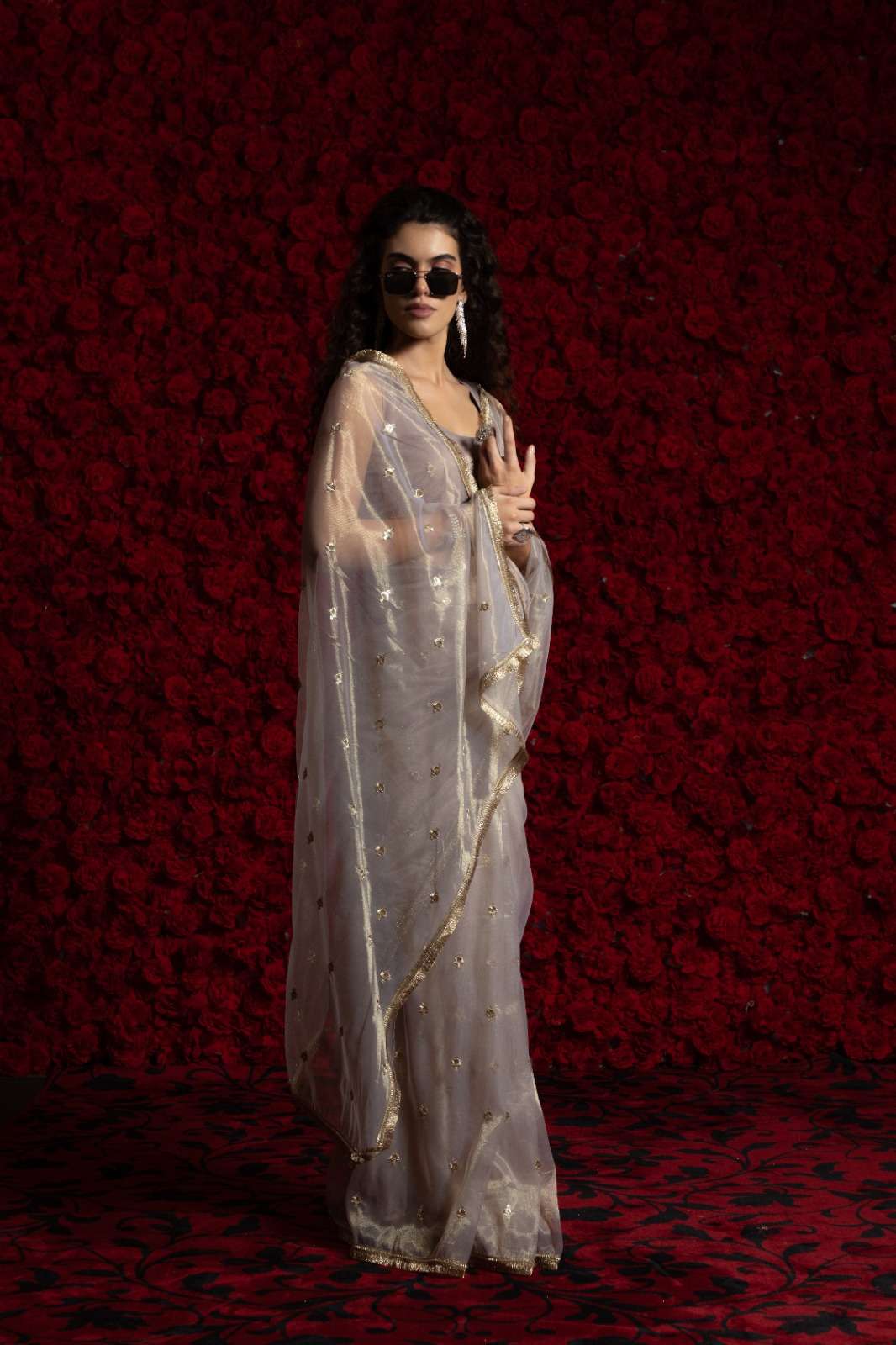 *SAREE FABRIC - NET ORGANZA* *BLOUSE – NET ORGANZA HANDWORK LACE (UNSTITCHED)* *zari embroidery with hand made lace*