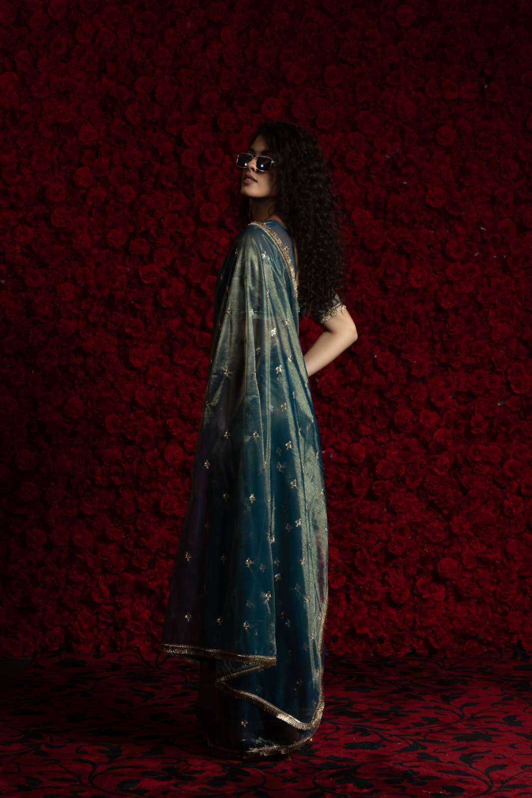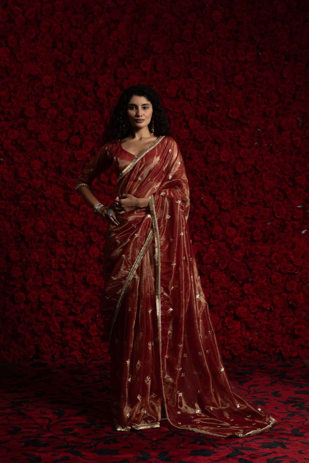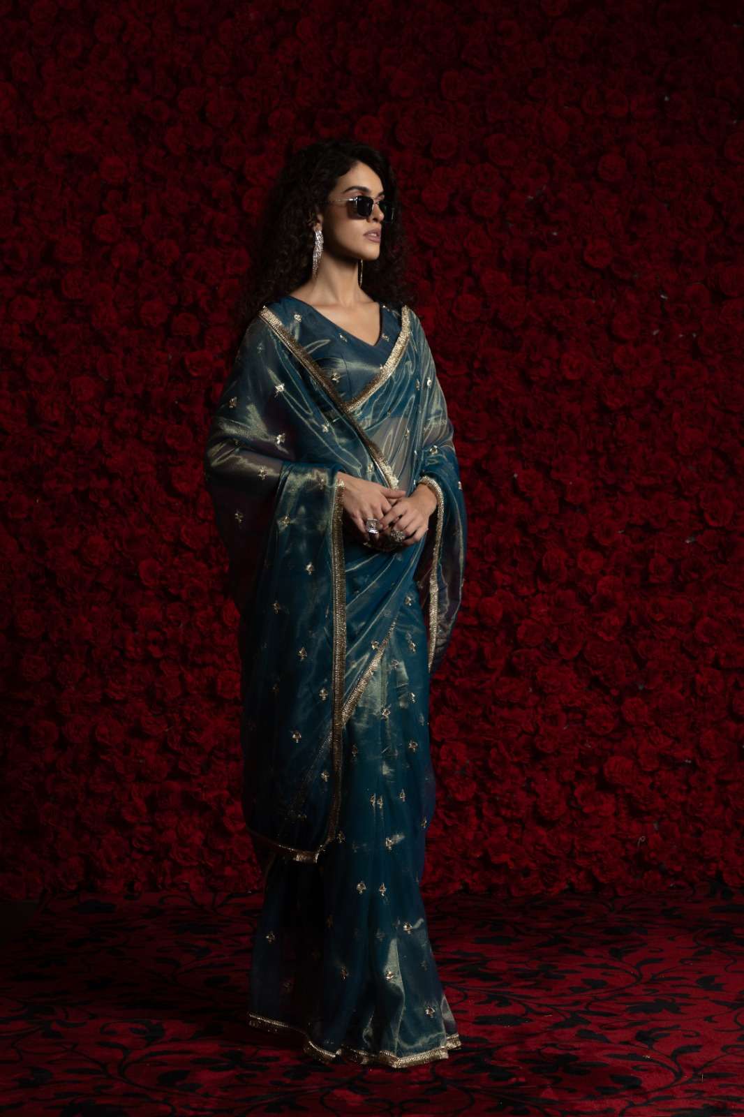 *SAREE FABRIC - NET ORGANZA* *BLOUSE – NET ORGANZA HANDWORK LACE (UNSTITCHED)* *zari embroidery with hand made lace*