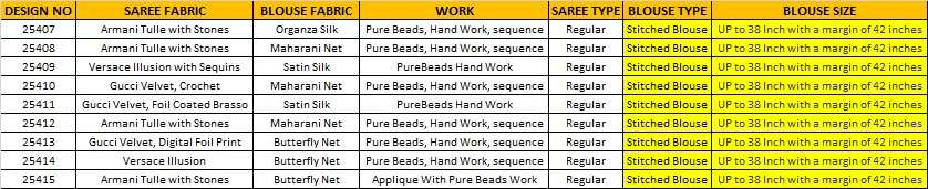 *PRICE :-* *25407-6475/-* *25408-6755/-* *25409-4695/-* *25410-6595/-* *25411-6665/-* *25412-6495/-* *25413-6315/-* *25414-5255/-* *25415-6585/-* *+ 5% GST EXTRA*