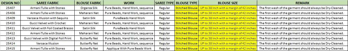| Note | Stitching available on customer Requirment For Sarees , Salwar Kameez, Lehengha.(i.e M,L,XL,XXL). |