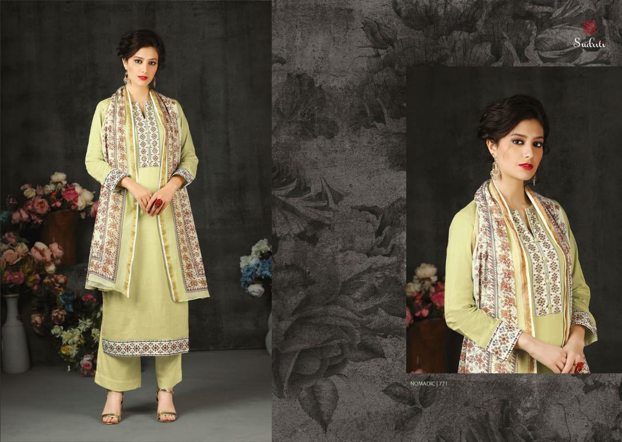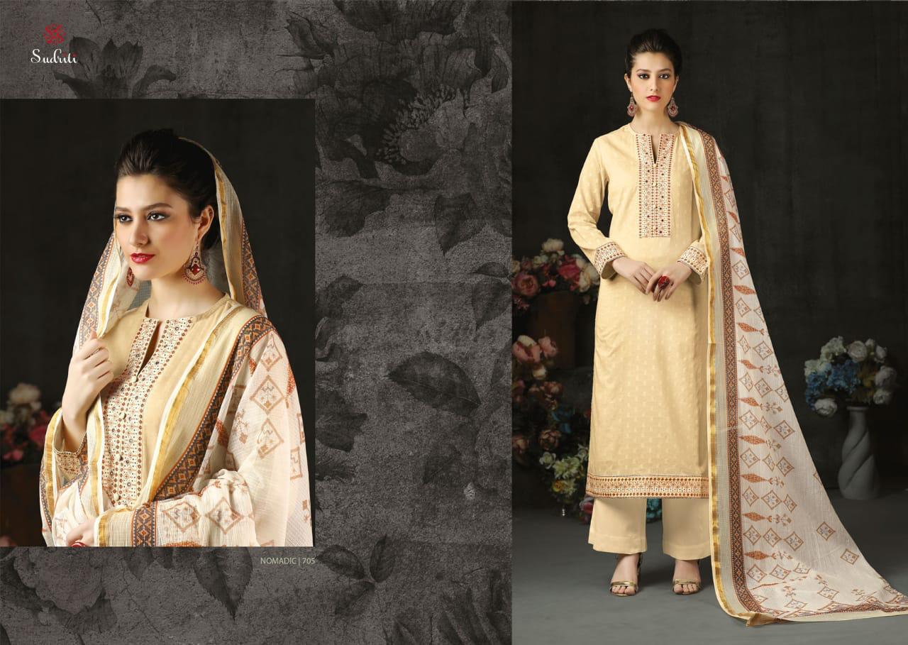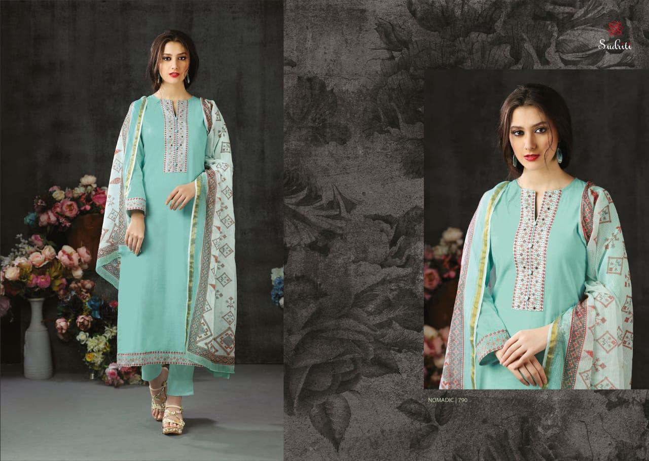 Buy Online Nomadic By Sudriti Cotton Designer Party Wear Suits Wholesale Supplier Surat 12 Pcs of Full Catalogue at Wholesale Price. Looking for Nomadic By Sudriti Cotton Designer Party Wear Suits Wholesale Supplier Surat Full Catalouge at Best Price? Buy Now Nomadic By Sudriti Cotton Designer Party Wear Suits Wholesale Supplier Surat at Wholesale Rate of Rs 12540 with Total 12 Pcs from authroized dealer and supplier of SUDRITI Brand. Cost of Each piece is just only Rs 1045 which is very low and affordable price to resale the product in your retail store ,This is Surat based Wholesale Supplier & Dealer of SUDRITI Brand. Click on Brand name to Know more about SUDRITI Brand's products.Call or Whatsapp on 9898838984 for booking or enquiry