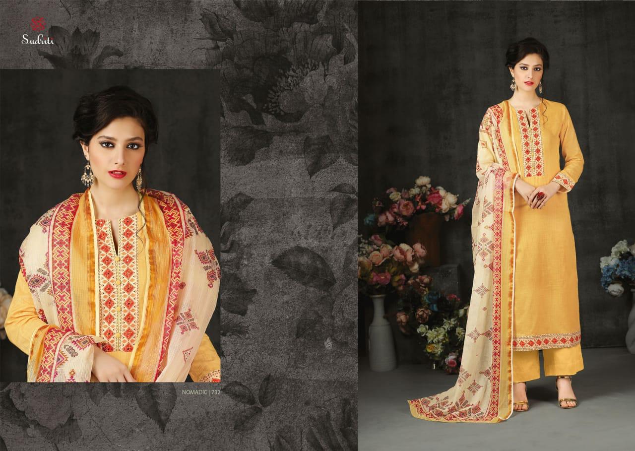 Buy Online Nomadic By Sudriti Fancy Cotton Slub Cambric Digital Printed Salwar Kameez Catlog Wholesaler Surat 12 Pcs of Full Catalogue at Wholesale Price. Looking for Nomadic By Sudriti Fancy Cotton Slub Cambric Digital Printed Salwar Kameez Catlog Wholesaler Surat Full Catalouge at Best Price? Buy Now Nomadic By Sudriti Fancy Cotton Slub Cambric Digital Printed Salwar Kameez Catlog Wholesaler Surat at Wholesale Rate of Rs 12540 with Total 12 Pcs from authroized dealer and supplier of SUDRITI Brand. Cost of Each piece is just only Rs 1045 which is very low and affordable price to resale the product in your retail store ,This is Surat based Wholesale Supplier & Dealer of SUDRITI Brand. Click on Brand name to Know more about SUDRITI Brand's products.Call or Whatsapp on 9898838984 for booking or enquiry