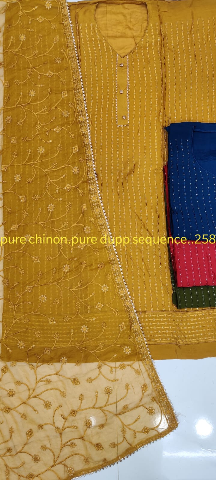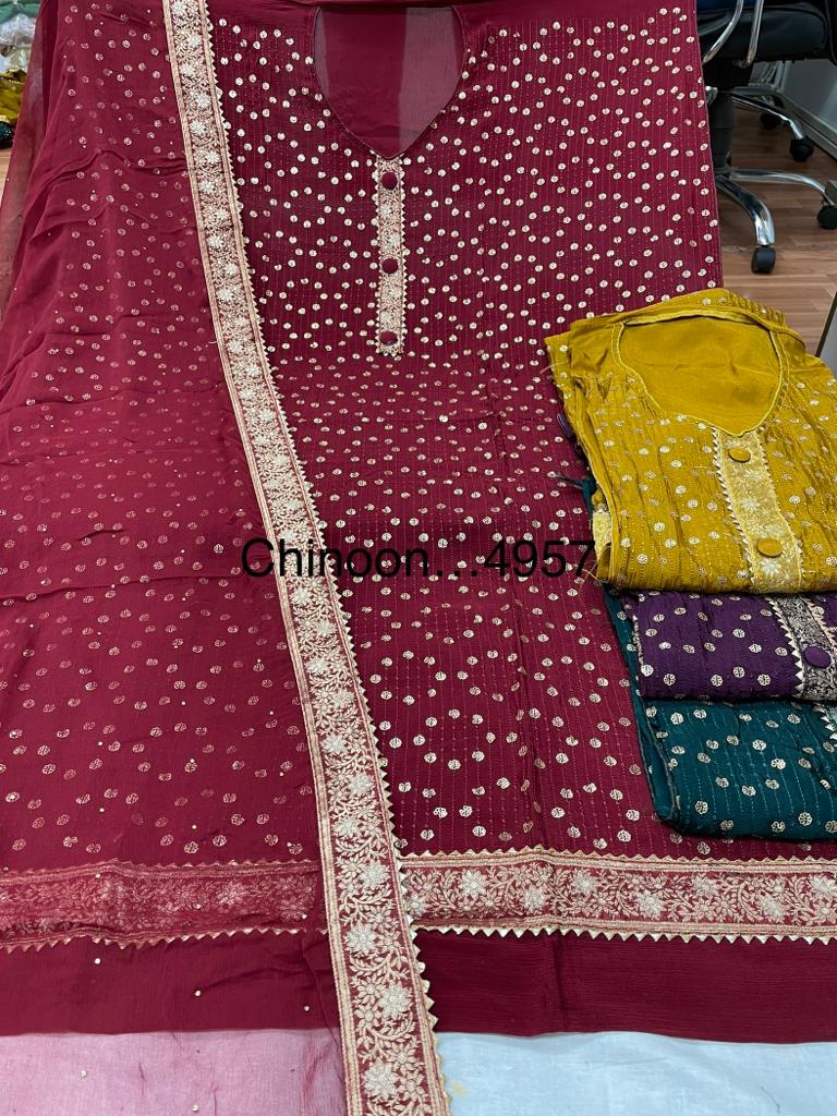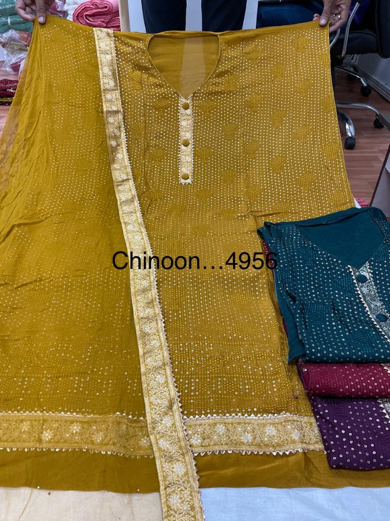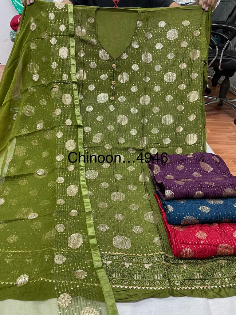 NON CATLOGUE SUITS 100% ORIGINAL 1445+GST SET TO SET 4 COLOR MATCHING FABRIC- AND COLOR ON PIC SET TO SET |