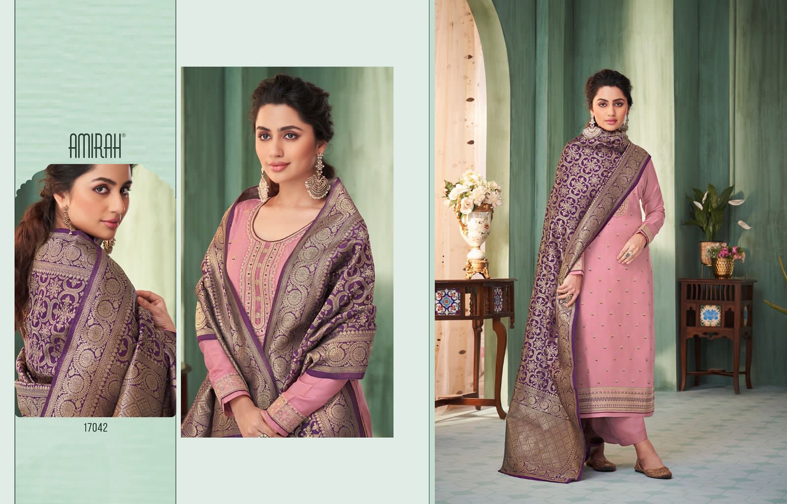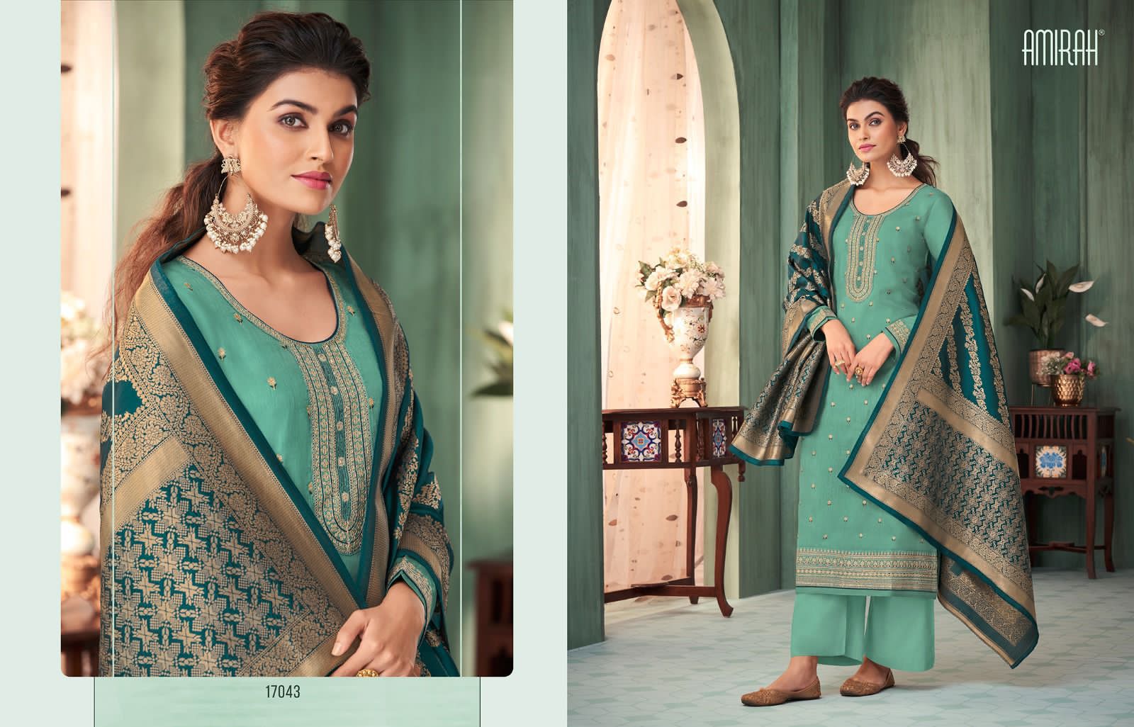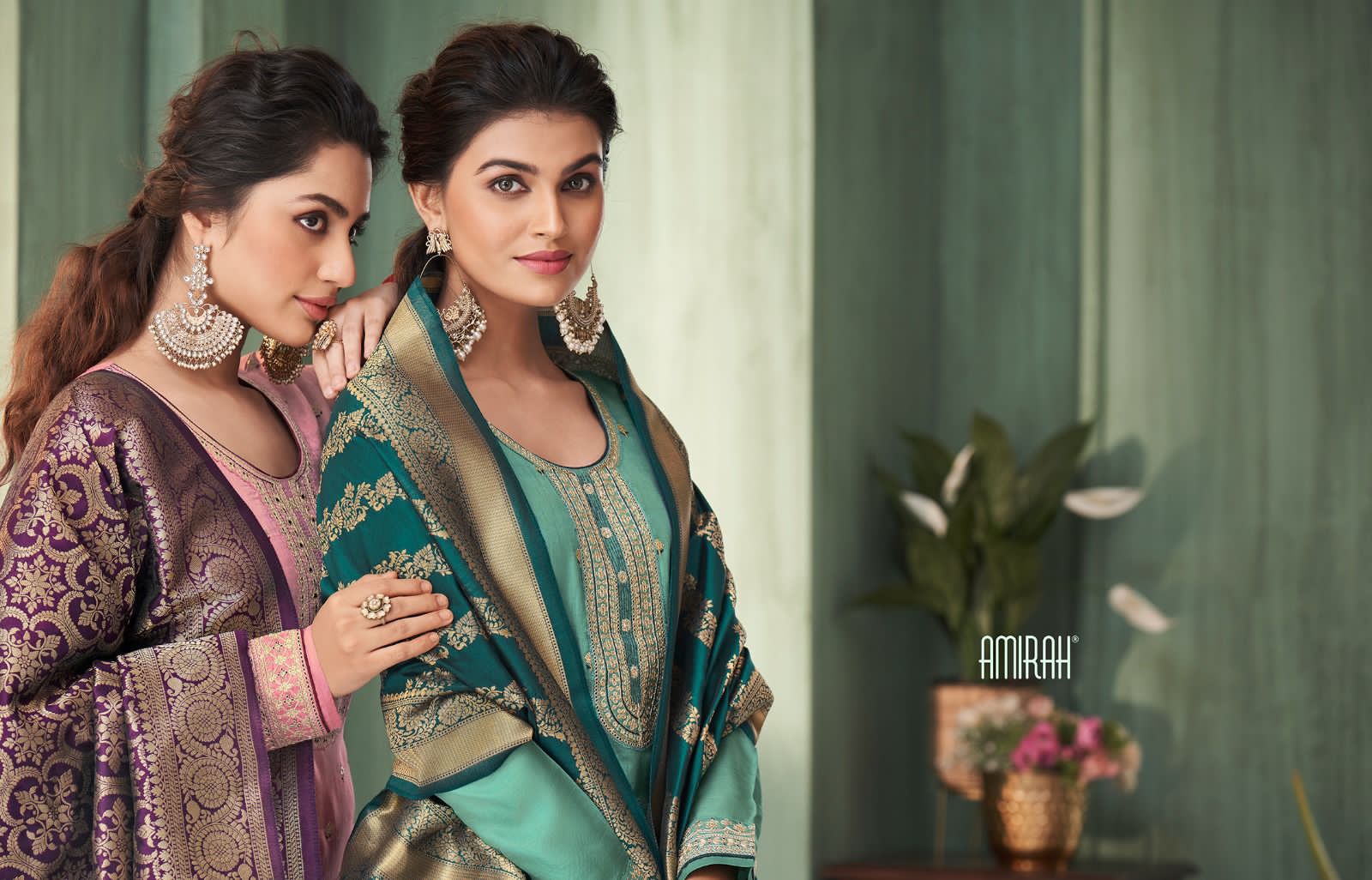 *"AMIRAH"*_ BRAND CREATED BY YOU..... *Â?*FANTASTIC "**collection of.......6designs.......* ?*AMIRAH NOOR*? Fabric Details:- ? Top : - *HAVY CHINON SILK WITH EMBRODERY WORK* INER BOTTOM :- *DULL SANTOON....* ??Dup. : - *BANARASI JAQARD DUPTTA* ? *Billing Rate:1195/- + G.s.t* |