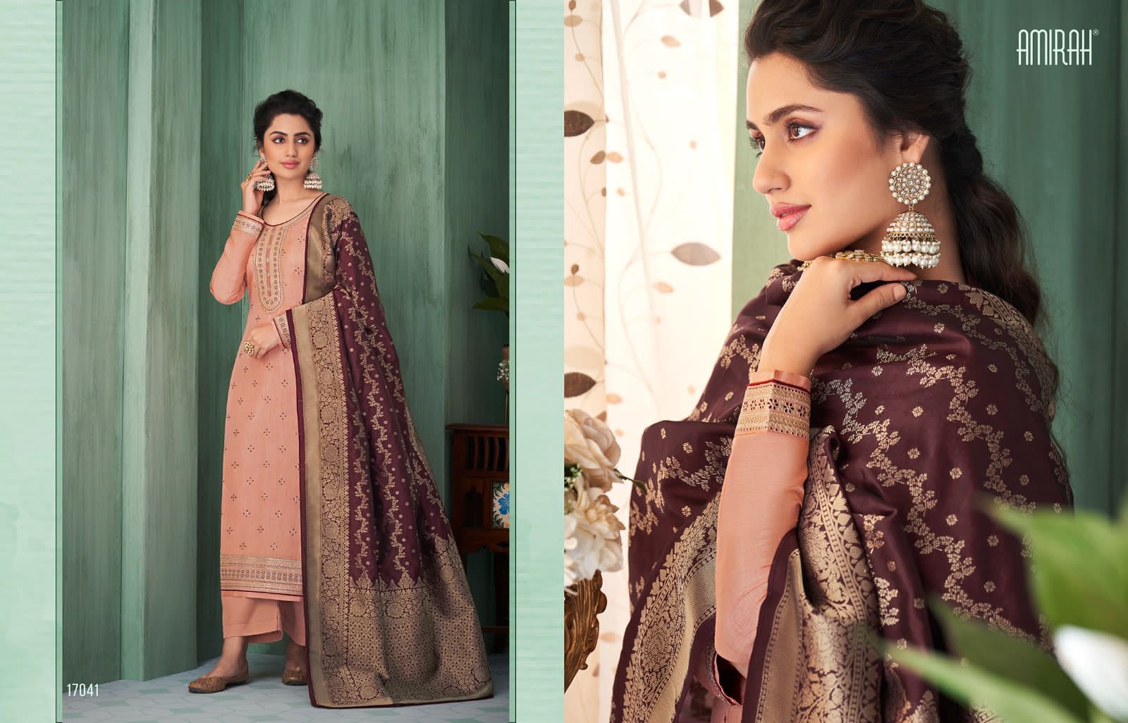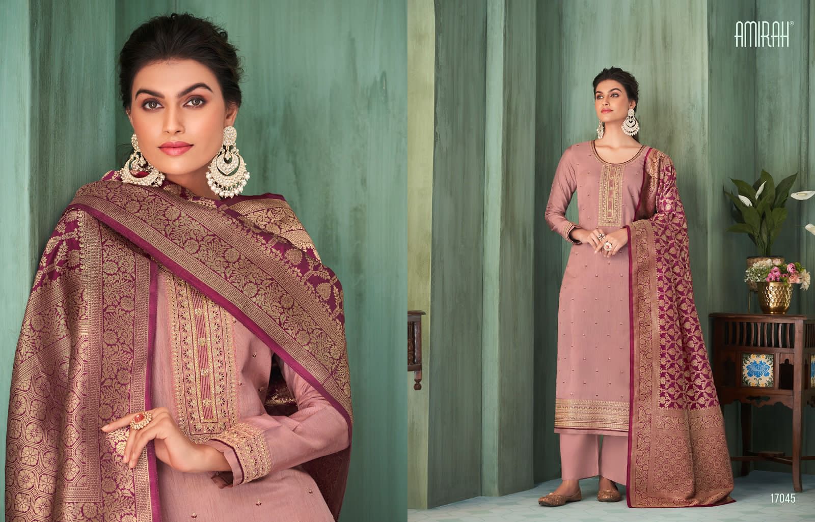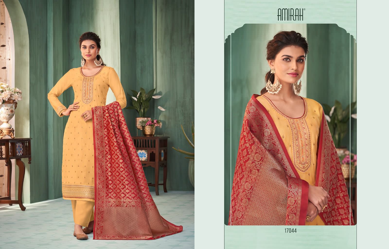 *"AMIRAH"*_ BRAND CREATED BY YOU..... *Â?*FANTASTIC "**collection of.......6designs.......* ?*AMIRAH NOOR*? Fabric Details:- ? Top : - *HAVY CHINON SILK WITH EMBRODERY WORK* INER BOTTOM :- *DULL SANTOON....* ??Dup. : - *BANARASI JAQARD DUPTTA* ? *Billing Rate:1195/- + G.s.t* |