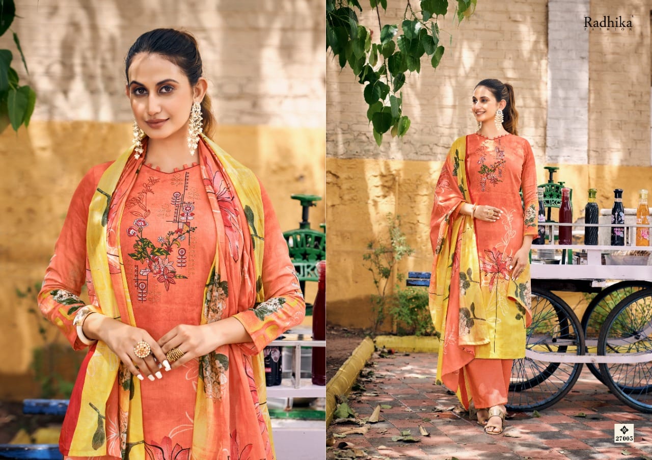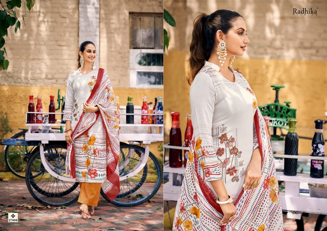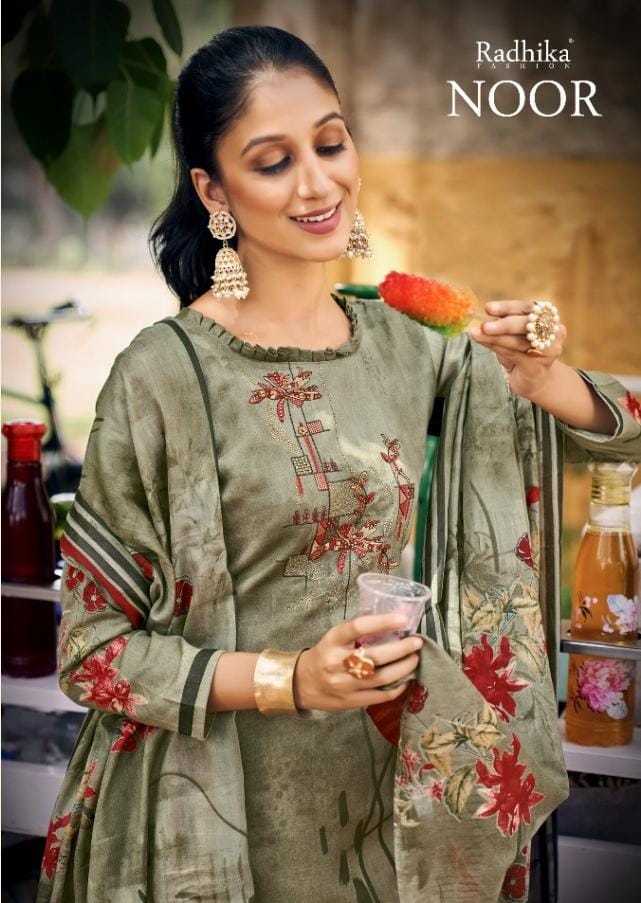 Buy Online Noor By Radhika Fashion Designer Cotton Suit Dealer And Exporter Surat Gujarat 8 Pcs of Full Catalogue at Wholesale Price. Looking for Noor By Radhika Fashion Designer Cotton Suit Dealer And Exporter Surat Gujarat Full Catalouge at Best Price? Buy Now Noor By Radhika Fashion Designer Cotton Suit Dealer And Exporter Surat Gujarat at Wholesale Rate of Rs 5680 with Total 8 Pcs from authroized dealer and supplier of RADHIKA Brand. Cost of Each piece is just only Rs 710 which is very low and affordable price to resale the product in your retail store ,This is Surat based Wholesale Supplier & Dealer of RADHIKA Brand. Click on Brand name to Know more about RADHIKA Brand's products.Call or Whatsapp on 9898838984 for booking or enquiry
