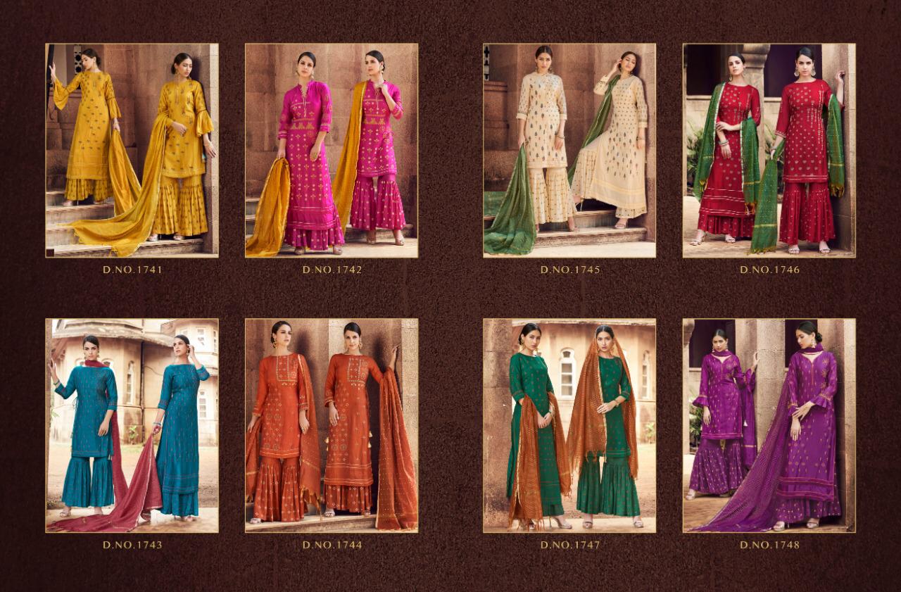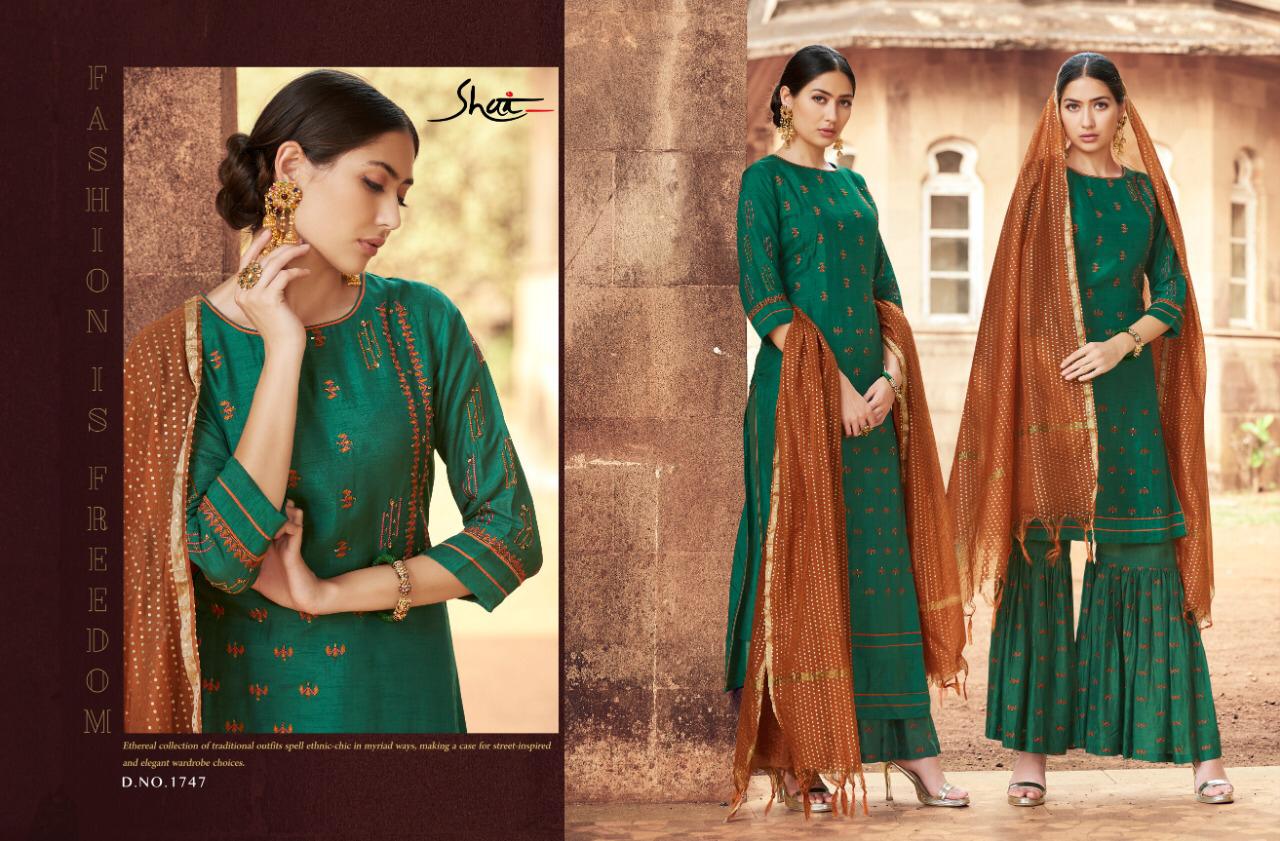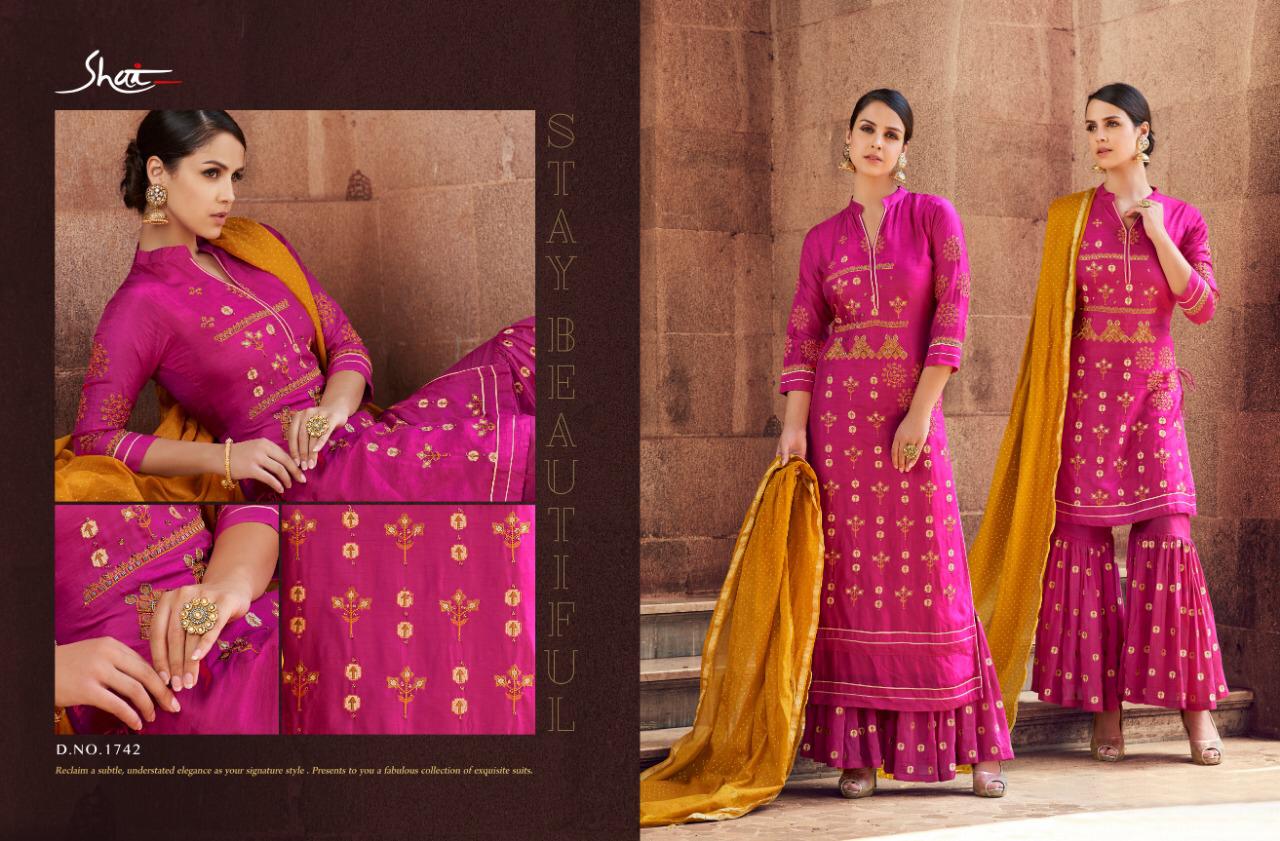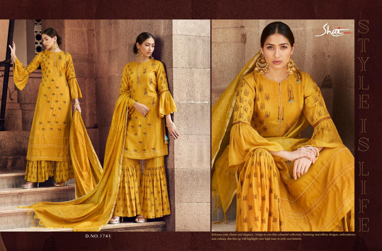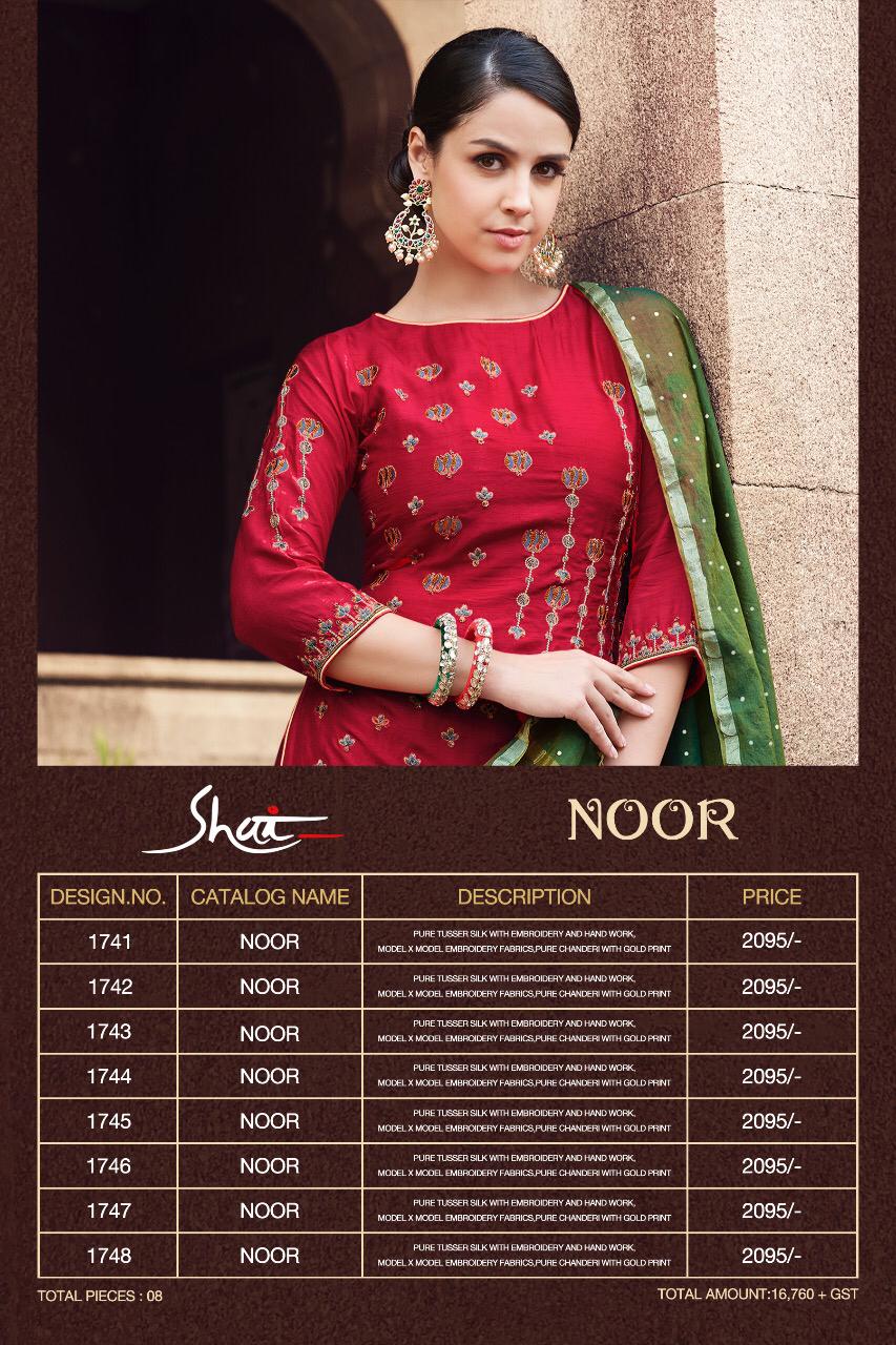 Buy Online Noor By Shai 1741 Series Fancy Pure Tusser Silk Party Wear Sarara Suit Collection Wholesale Dealer Surat 8 Pcs of Full Catalogue at Wholesale Price. Looking for Noor By Shai 1741 Series Fancy Pure Tusser Silk Party Wear Sarara Suit Collection Wholesale Dealer Surat Full Catalouge at Best Price? Buy Now Noor By Shai 1741 Series Fancy Pure Tusser Silk Party Wear Sarara Suit Collection Wholesale Dealer Surat at Wholesale Rate of Rs 16760 with Total 8 Pcs from authroized dealer and supplier of SHAI Brand. Cost of Each piece is just only Rs 2095 which is very low and affordable price to resale the product in your retail store ,This is Surat based Wholesale Supplier & Dealer of SHAI Brand. Click on Brand name to Know more about SHAI Brand's products.Call or Whatsapp on 9898838984 for booking or enquiry