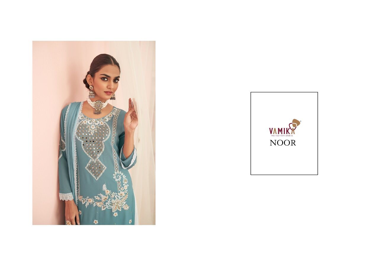 Buy Online Noor By Vamika Formal Collection Top Bottom With Dupatta Wholesaler Supplier From Surat 6 Pcs of Full Catalogue at Wholesale Price. Looking for Noor By Vamika Formal Collection Top Bottom With Dupatta Wholesaler Supplier From Surat Full Catalouge at Best Price? Buy Now Noor By Vamika Formal Collection Top Bottom With Dupatta Wholesaler Supplier From Surat at Wholesale Rate of Rs 7770 with Total 6 Pcs from authroized dealer and supplier of Brand. Cost of Each piece is just only Rs 1295 which is very low and affordable price to resale the product in your retail store ,This is Surat based Wholesale Supplier & Dealer of Brand. Click on Brand name to Know more about Brand's products.Call or Whatsapp on 9898838984 for booking or enquiry