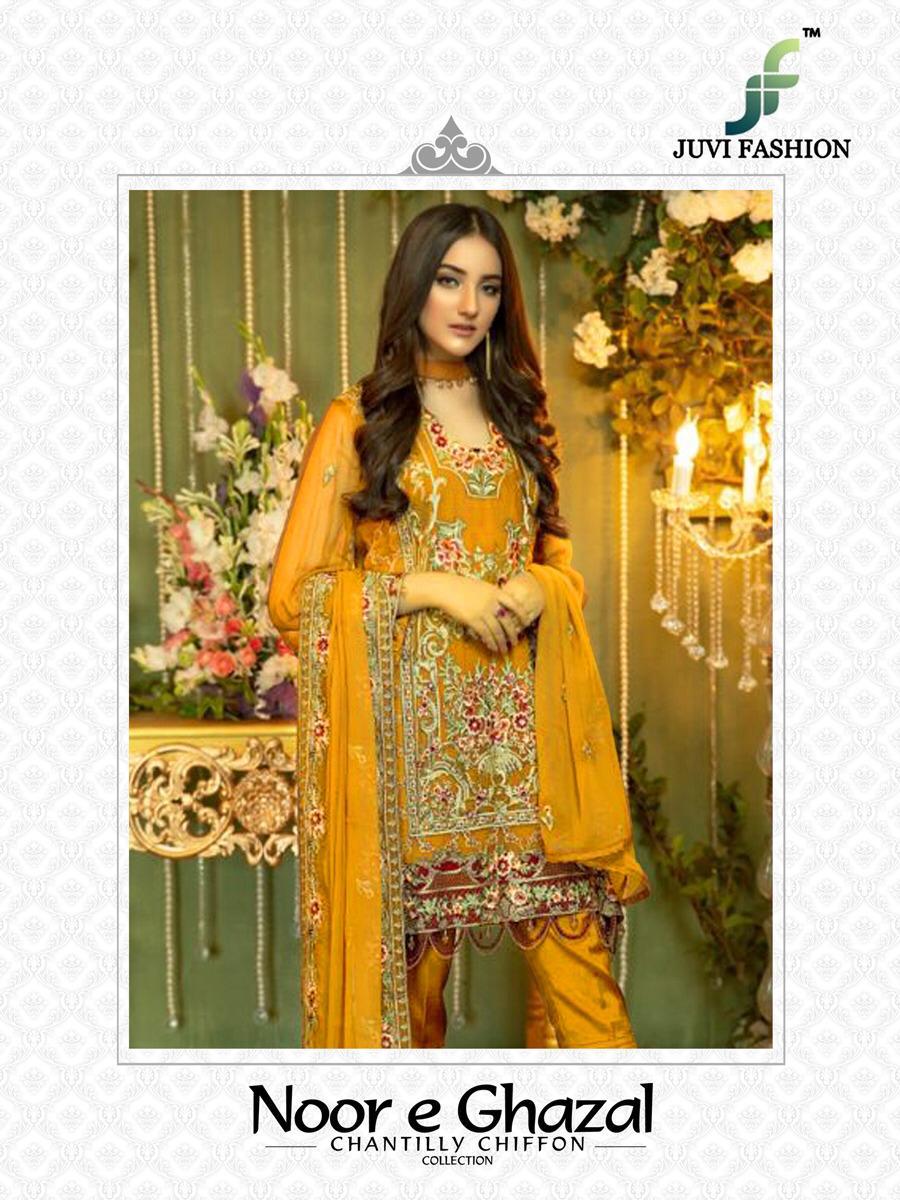 Noor E Ghazal Chantilly Chiffon Collection 19 By Juvi Fashion 37001 Series Fancy Foux Georgette Pakistani Suit Collecrion Wholesaler Surat