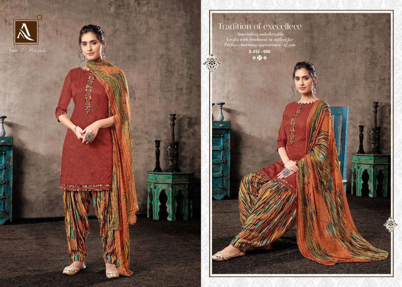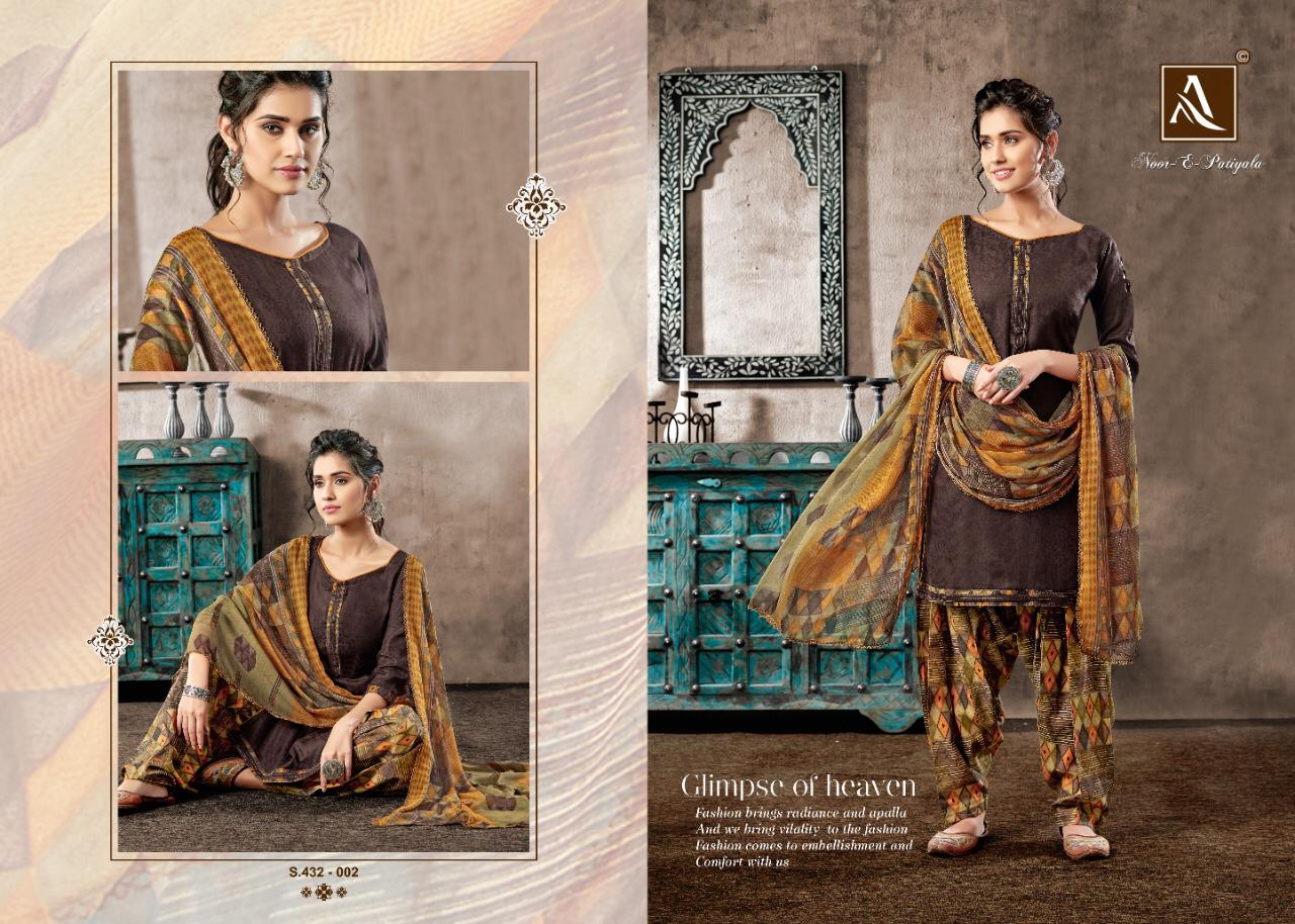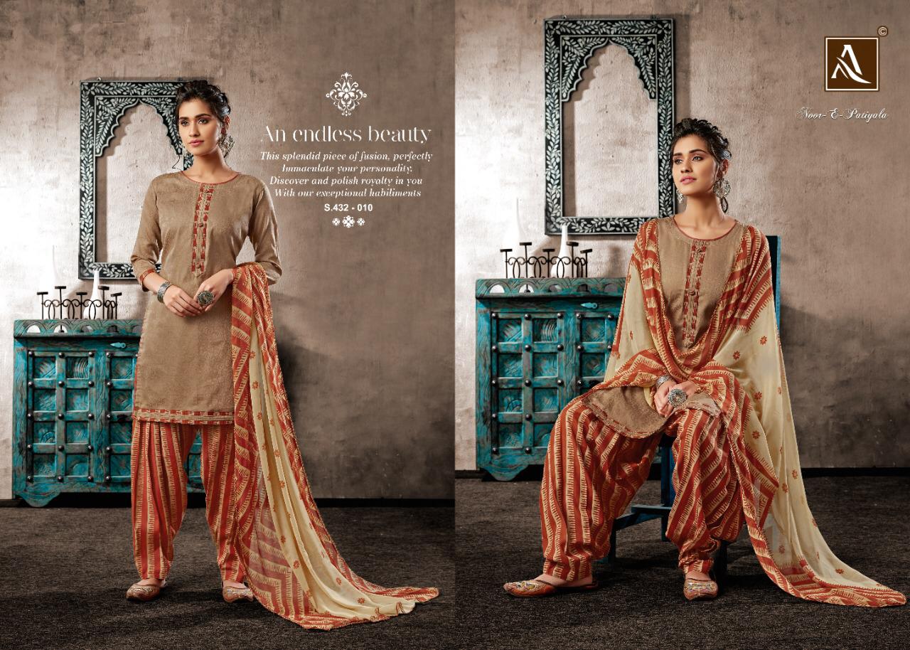 Buy Online Noor E Patiyala By Alok Suit Dress Materials Wholesale Supplier Surat 10 Pcs of Full Catalogue at Wholesale Price. Looking for Noor E Patiyala By Alok Suit Dress Materials Wholesale Supplier Surat Full Catalouge at Best Price? Buy Now Noor E Patiyala By Alok Suit Dress Materials Wholesale Supplier Surat at Wholesale Rate of Rs 4490 with Total 10 Pcs from authroized dealer and supplier of Brand. Cost of Each piece is just only Rs 449 which is very low and affordable price to resale the product in your retail store ,This is Surat based Wholesale Supplier & Dealer of Brand. Click on Brand name to Know more about Brand's products.Call or Whatsapp on 9898838984 for booking or enquiry
