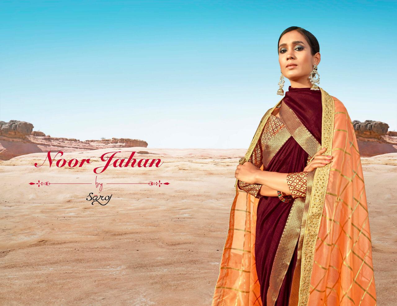 Buy Online Noor Jahan By Saroj Vichitra Silk Sarees Wholesale Supplier Gujarat 8 Pcs of Full Catalogue at Wholesale Price. Looking for Noor Jahan By Saroj Vichitra Silk Sarees Wholesale Supplier Gujarat Full Catalouge at Best Price? Buy Now Noor Jahan By Saroj Vichitra Silk Sarees Wholesale Supplier Gujarat at Wholesale Rate of Rs 10520 with Total 8 Pcs from authroized dealer and supplier of SAROJ SAREE Brand. Cost of Each piece is just only Rs 1315 which is very low and affordable price to resale the product in your retail store ,This is Surat based Wholesale Supplier & Dealer of SAROJ SAREE Brand. Click on Brand name to Know more about SAROJ SAREE Brand's products.Call or Whatsapp on 9898838984 for booking or enquiry