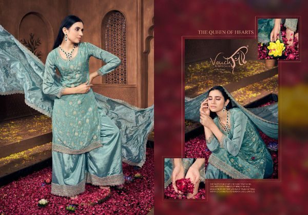 Buy Online Noor Mahal Vol 4 Series 1001 To 1005 By Vouch Fashion 5 Pcs of Full Catalogue at Wholesale Price. Looking for Noor Mahal Vol 4 Series 1001 To 1005 By Vouch Fashion Full Catalouge at Best Price? Buy Now Noor Mahal Vol 4 Series 1001 To 1005 By Vouch Fashion at Wholesale Rate of Rs 9495 with Total 5 Pcs from authroized dealer and supplier of Brand. Cost of Each piece is just only Rs 1899 which is very low and affordable price to resale the product in your retail store ,This is Surat based Wholesale Supplier & Dealer of Brand. Click on Brand name to Know more about Brand's products.Call or Whatsapp on 9898838984 for booking or enquiry