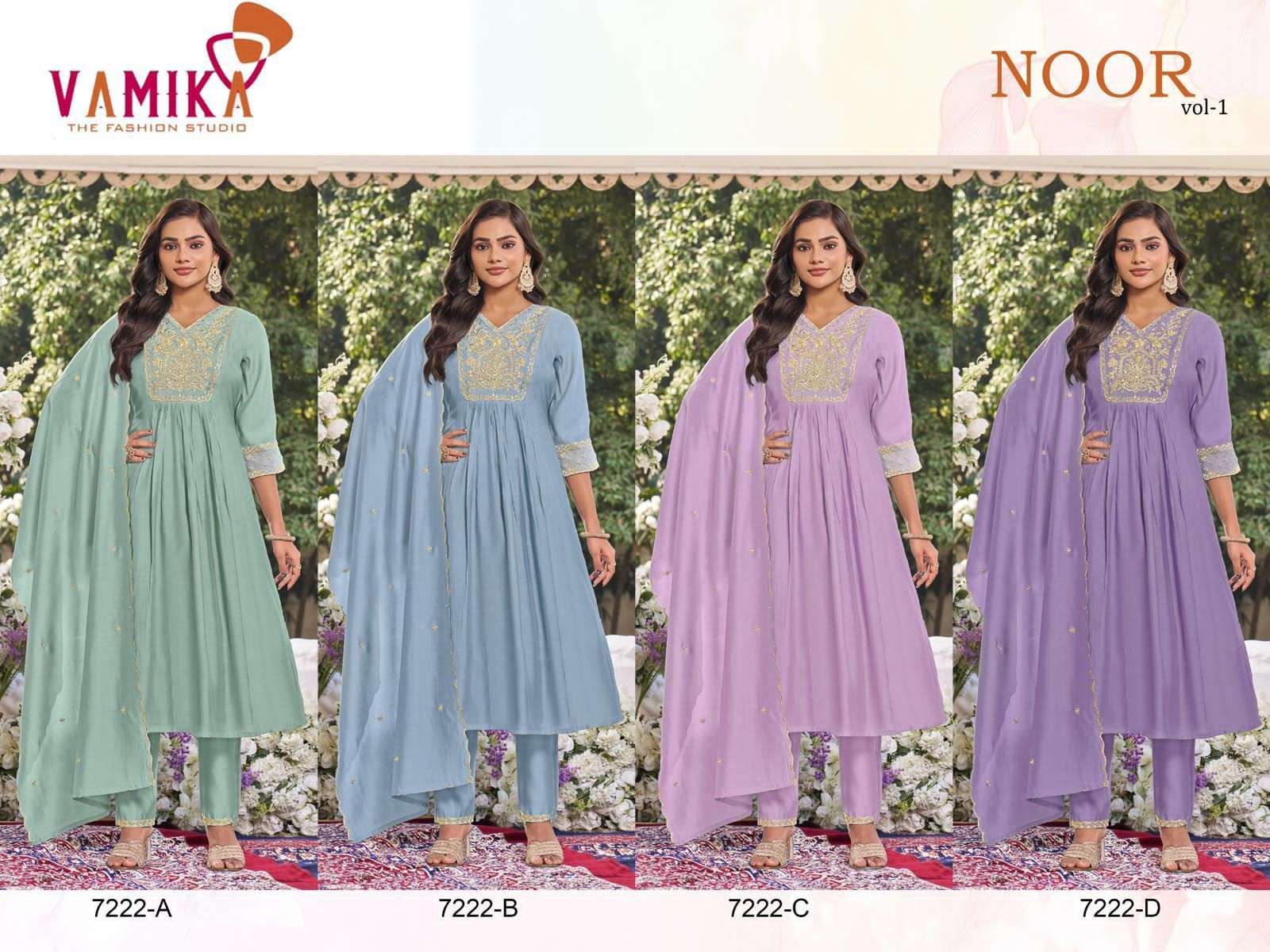 Noor Vol 01 D NO 7222A To 7222 D by Vamika kurti collection manufacturers surat