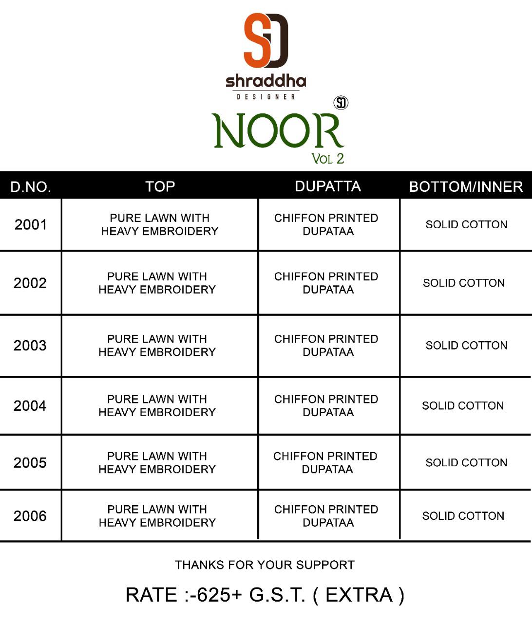 Buy Online Noor Vol 2 Shraddha Designer Pakistani Suits Wholesale Supplier Gujarat 6 Pcs of Full Catalogue at Wholesale Price. Looking for Noor Vol 2 Shraddha Designer Pakistani Suits Wholesale Supplier Gujarat Full Catalouge at Best Price? Buy Now Noor Vol 2 Shraddha Designer Pakistani Suits Wholesale Supplier Gujarat at Wholesale Rate of Rs 3750 with Total 6 Pcs from authroized dealer and supplier of Brand. Cost of Each piece is just only Rs 625 which is very low and affordable price to resale the product in your retail store ,This is Surat based Wholesale Supplier & Dealer of Brand. Click on Brand name to Know more about Brand's products.Call or Whatsapp on 9898838984 for booking or enquiry
