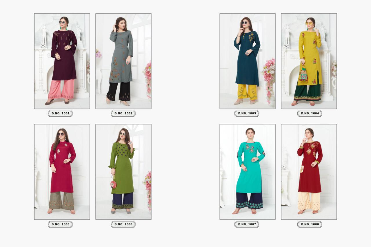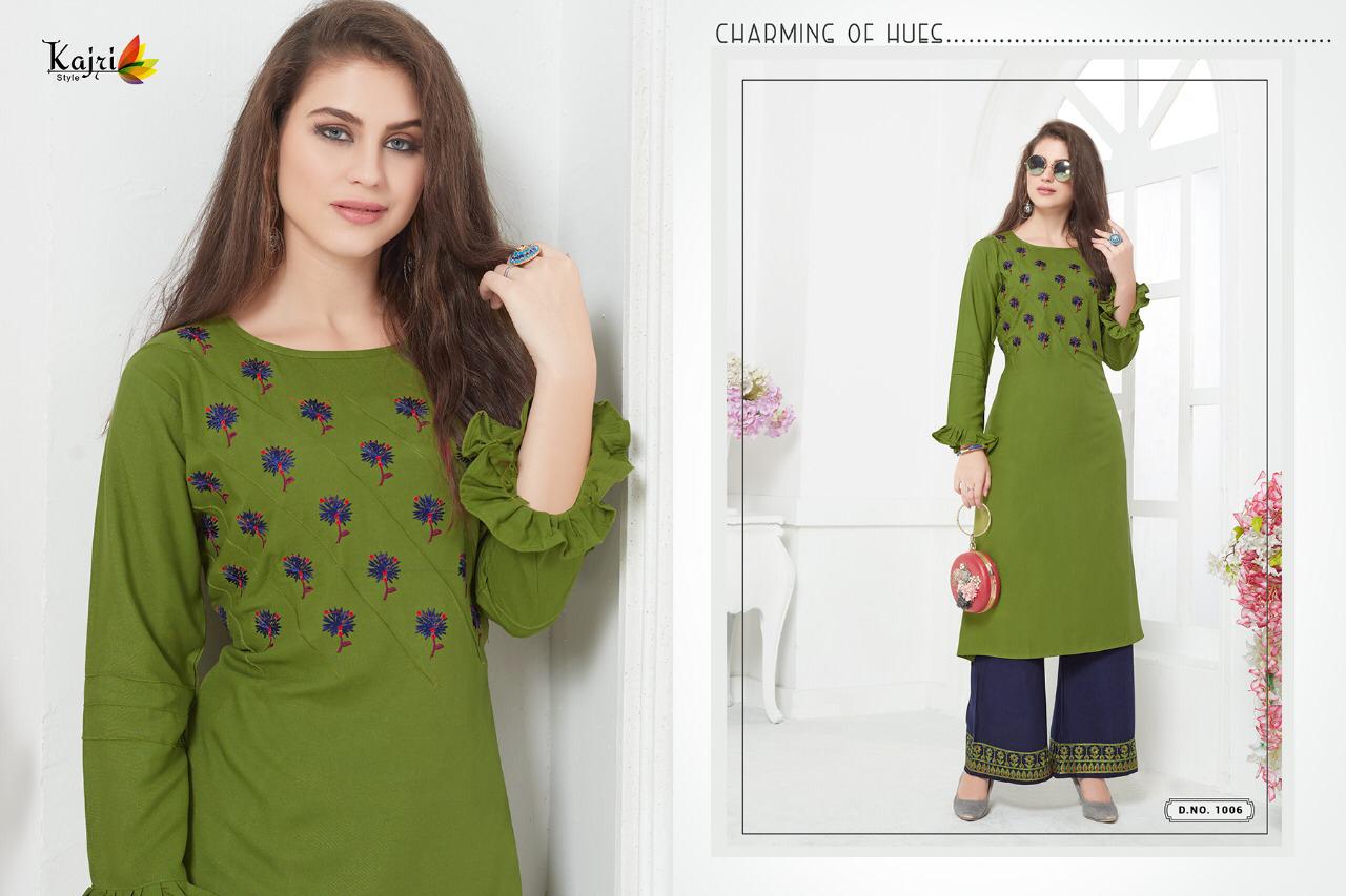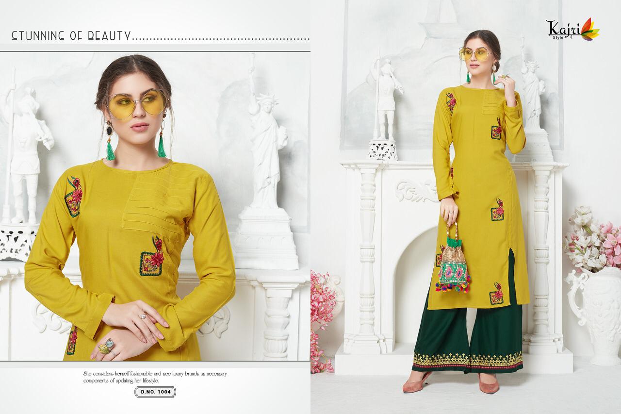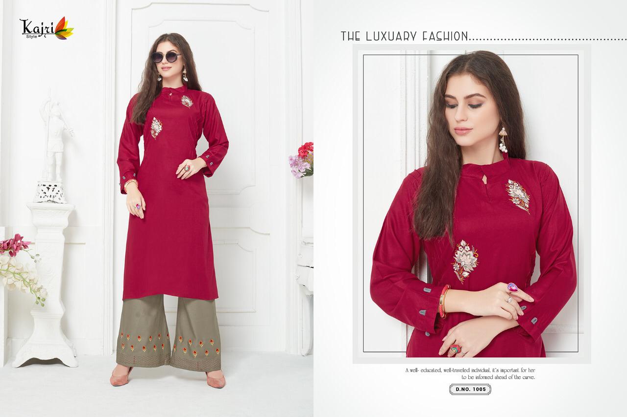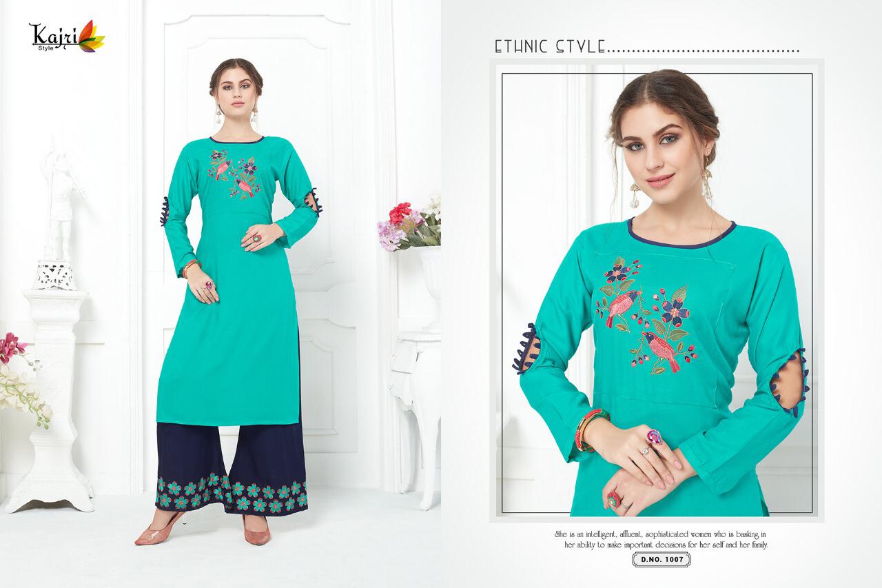 Buy Online Noor Vol 5 By Kajri Style Designer Kurtis With Plazzo Wholesale Supplier Surat 8 Pcs of Full Catalogue at Wholesale Price. Looking for Noor Vol 5 By Kajri Style Designer Kurtis With Plazzo Wholesale Supplier Surat Full Catalouge at Best Price? Buy Now Noor Vol 5 By Kajri Style Designer Kurtis With Plazzo Wholesale Supplier Surat at Wholesale Rate of Rs 5208 with Total 8 Pcs from authroized dealer and supplier of KAJRI STYLE Brand. Cost of Each piece is just only Rs 651 which is very low and affordable price to resale the product in your retail store ,This is Surat based Wholesale Supplier & Dealer of KAJRI STYLE Brand. Click on Brand name to Know more about KAJRI STYLE Brand's products.Call or Whatsapp on 9898838984 for booking or enquiry