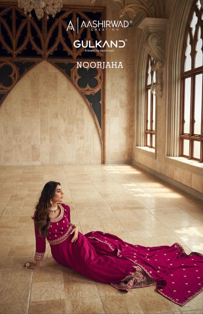 Buy Online Noorjaha By Aashirwad Premium Silk Suits Manufacturing Surat 4 Pcs of Full Catalogue at Wholesale Price. Looking for Noorjaha By Aashirwad Premium Silk Suits Manufacturing Surat Full Catalouge at Best Price? Buy Now Noorjaha By Aashirwad Premium Silk Suits Manufacturing Surat at Wholesale Rate of Rs 9596 with Total 4 Pcs from authroized dealer and supplier of AASHIRWAD Brand. Cost of Each piece is just only Rs 2399 which is very low and affordable price to resale the product in your retail store ,This is Surat based Wholesale Supplier & Dealer of AASHIRWAD Brand. Click on Brand name to Know more about AASHIRWAD Brand's products.Call or Whatsapp on 9898838984 for booking or enquiry