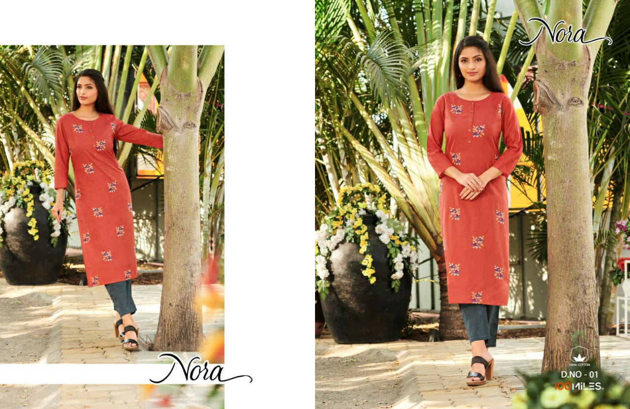 *Brand :* 100 miles *Catalog Name :* Nora *Price :* ?405 *Piece :* 4 *Total Price :* 1620 ( GST Extra ) *Size :* S,M,L,XL,XXL,XXXL *Fabric :* cotton *Availibility :* On Booking |