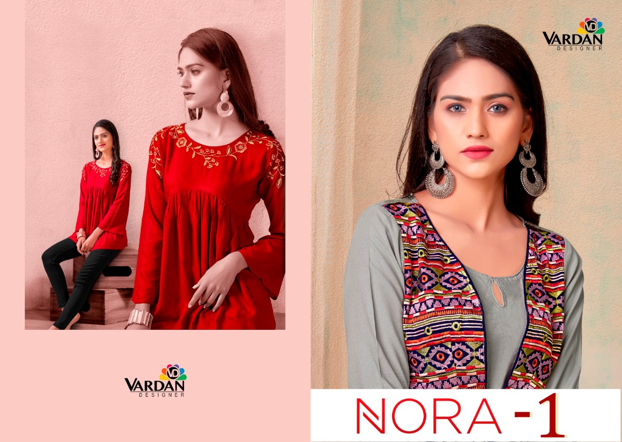 Buy Online Nora Vol 1 By Vardan Designer Western Tops Wholesale Supplier And Dealer Surat 6 Pcs of Full Catalogue at Wholesale Price. Looking for Nora Vol 1 By Vardan Designer Western Tops Wholesale Supplier And Dealer Surat Full Catalouge at Best Price? Buy Now Nora Vol 1 By Vardan Designer Western Tops Wholesale Supplier And Dealer Surat at Wholesale Rate of Rs 2664 with Total 6 Pcs from authroized dealer and supplier of VARDAN DESIGNER Brand. Cost of Each piece is just only Rs 444 which is very low and affordable price to resale the product in your retail store ,This is Surat based Wholesale Supplier & Dealer of VARDAN DESIGNER Brand. Click on Brand name to Know more about VARDAN DESIGNER Brand's products.Call or Whatsapp on 9898838984 for booking or enquiry