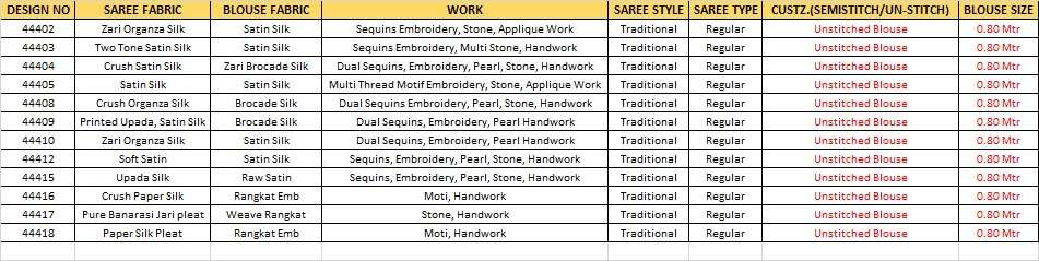 *PRICE :-* *44402-2415/-* *44403-2415/-* *44404-2205/-* *44405-2365/-* *44408-2315/-* *44409-2415/-* *44410-2375/-* *44412-2375/-* *44415-2555/-* *44416-2625/-* *44417-2095/-* *44418-2525/-* +*5% GST EXTRA*