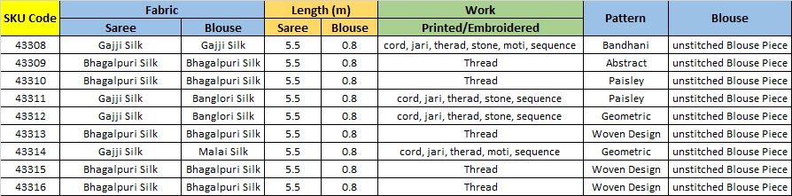 Buy Online Norita Royal Swasti 43300 Series Mahotsav Sarees Collection Surat 9 Pcs of Full Catalogue at Wholesale Price. Looking for Norita Royal Swasti 43300 Series Mahotsav Sarees Collection Surat Full Catalouge at Best Price? Buy Now Norita Royal Swasti 43300 Series Mahotsav Sarees Collection Surat at Wholesale Rate of Rs 0 with Total 9 Pcs from authroized dealer and supplier of Mahotsav Saree Brand. Cost of Each piece is just only Rs 0 which is very low and affordable price to resale the product in your retail store ,This is Surat based Wholesale Supplier & Dealer of Mahotsav Saree Brand. Click on Brand name to Know more about Mahotsav Saree Brand's products.Call or Whatsapp on 9898838984 for booking or enquiry