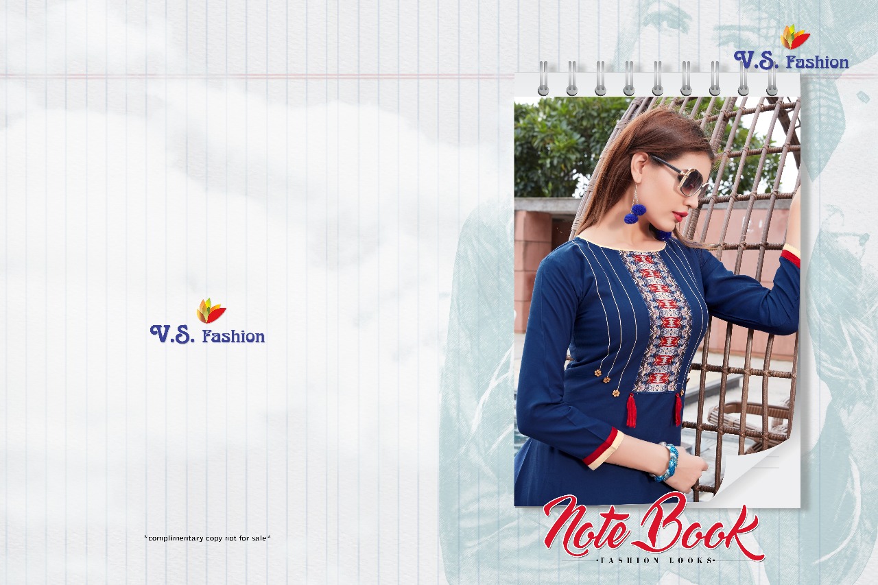 Note Book By Vs Fashion Reyon Designer Kurtis Wholesale Supplier And Dealer Surat