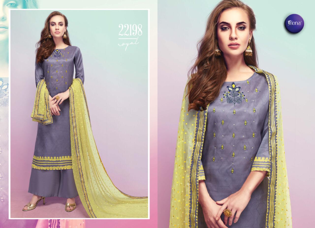 Brand - Fiona Catlog name - Noyal. Rate -999 per Pcs . Set to set. GST 5 Percent Extra Type - * Suit * Delivery date -05-12-18. Book your order now . |