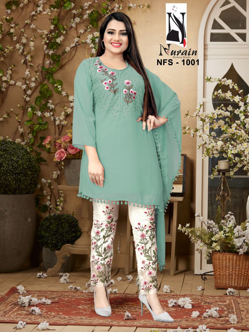 Buy Online Nurain Fashion Studio D No 1001 Wholesaler Supplier From Surat 2 Pcs of Full Catalogue at Wholesale Price. Looking for Nurain Fashion Studio D No 1001 Wholesaler Supplier From Surat Full Catalouge at Best Price? Buy Now Nurain Fashion Studio D No 1001 Wholesaler Supplier From Surat at Wholesale Rate of Rs 2100 with Total 2 Pcs from authroized dealer and supplier of Brand. Cost of Each piece is just only Rs 1050 which is very low and affordable price to resale the product in your retail store ,This is Surat based Wholesale Supplier & Dealer of Brand. Click on Brand name to Know more about Brand's products.Call or Whatsapp on 9898838984 for booking or enquiry
